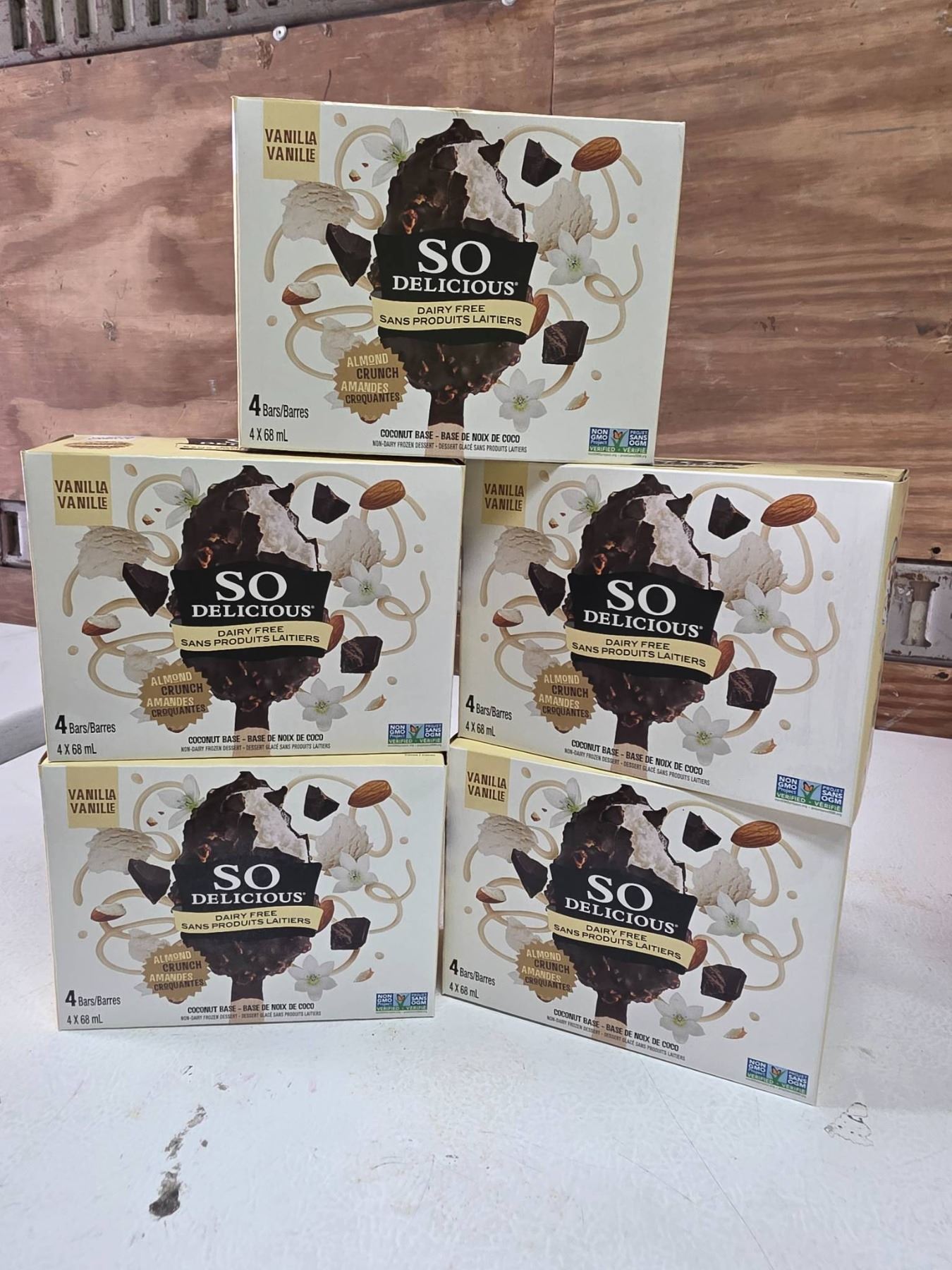 Lot 2147 So Delicious Dairy-Free Vanilla Ice Cream Bars, 4 Ct Per Package, Lot of 5