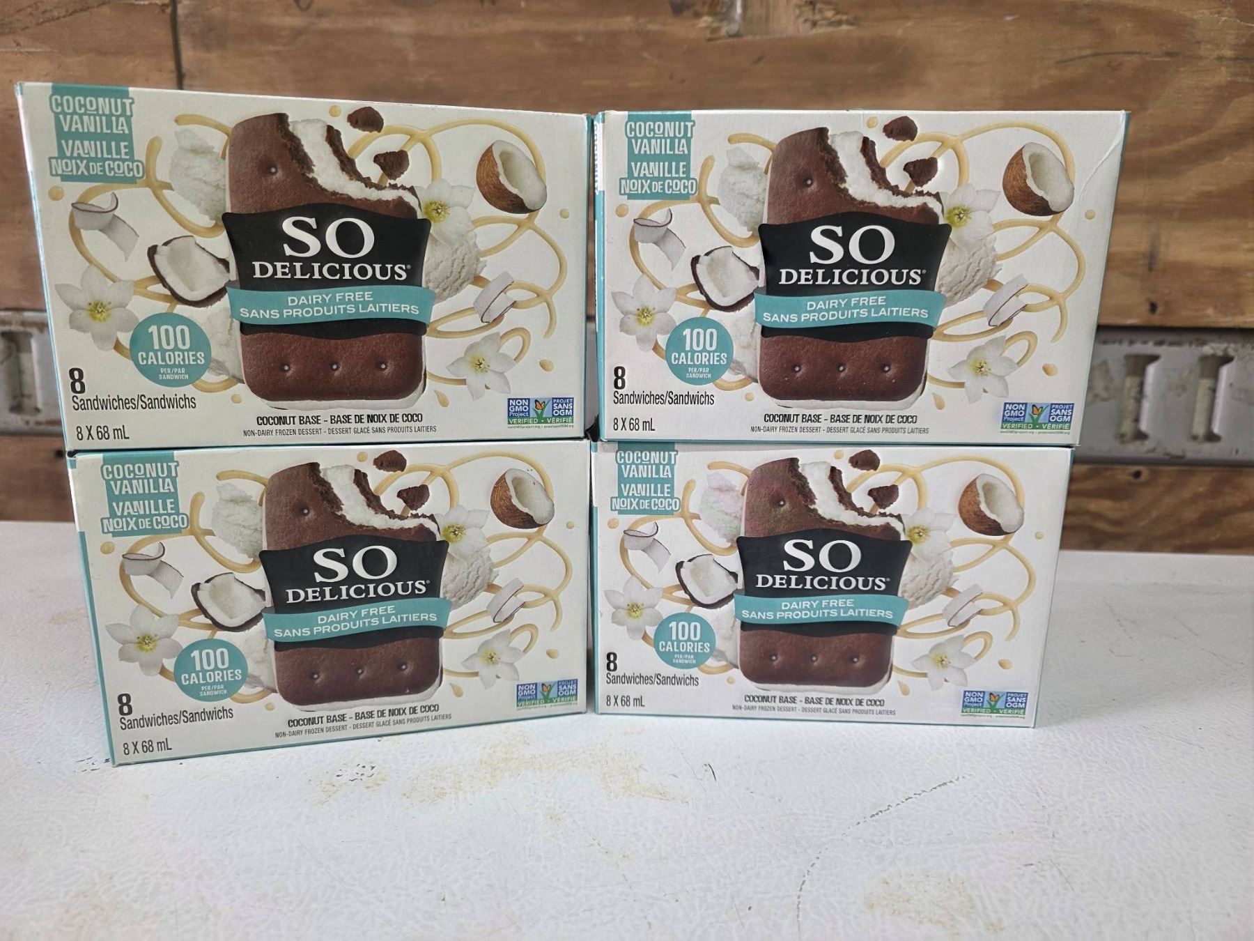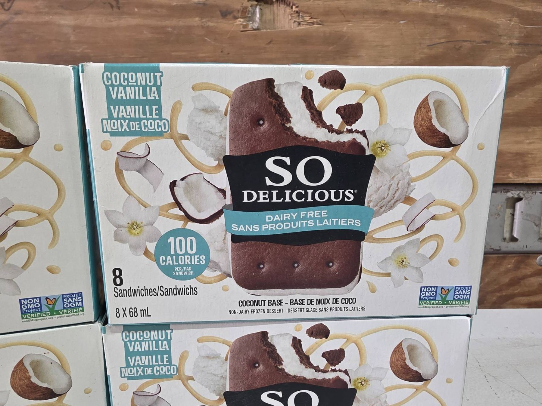 Lot 2149 Lot of 4 - So Delicious Dairy Free Sandwiches, Coconut Vanilla, 8 x 85 ml