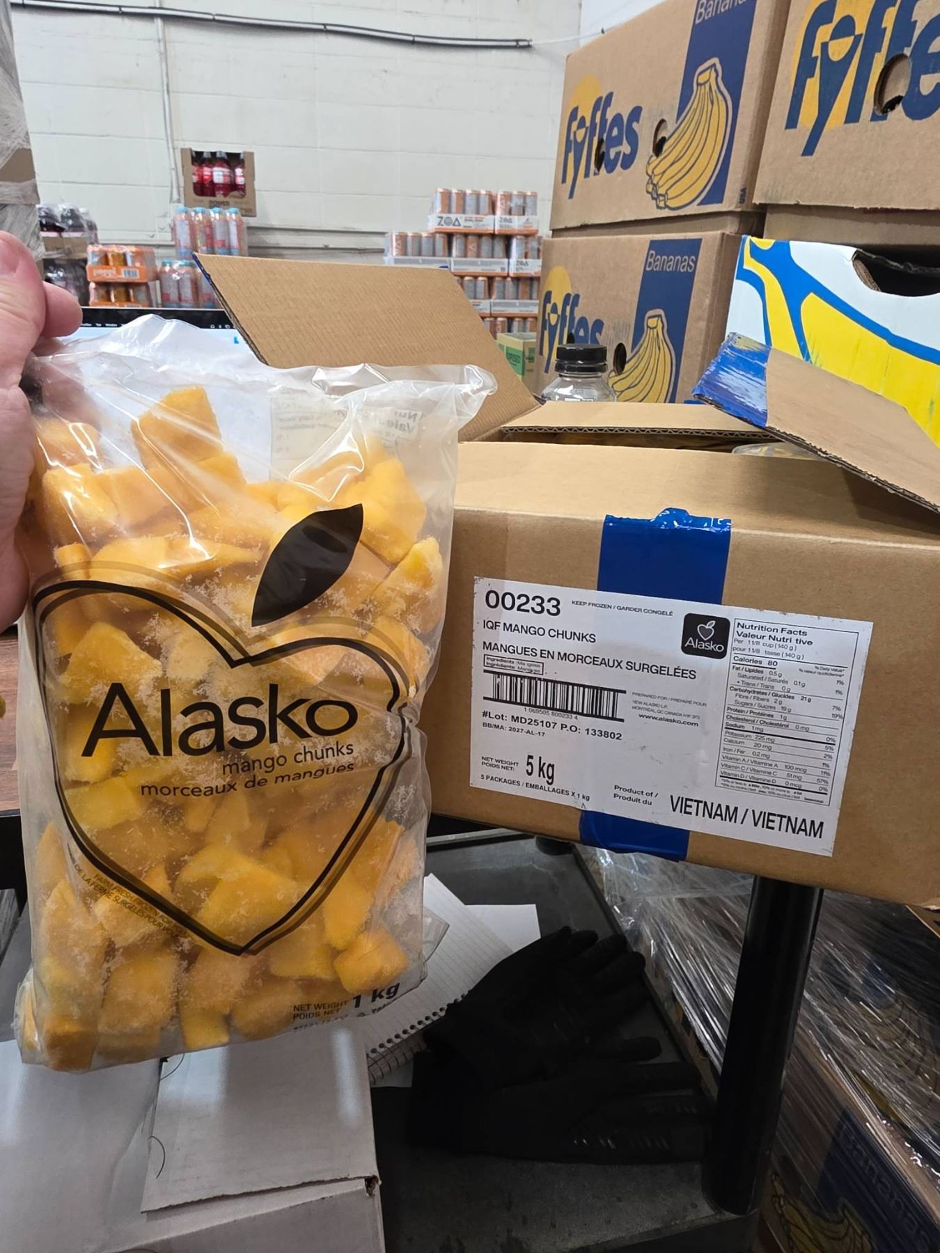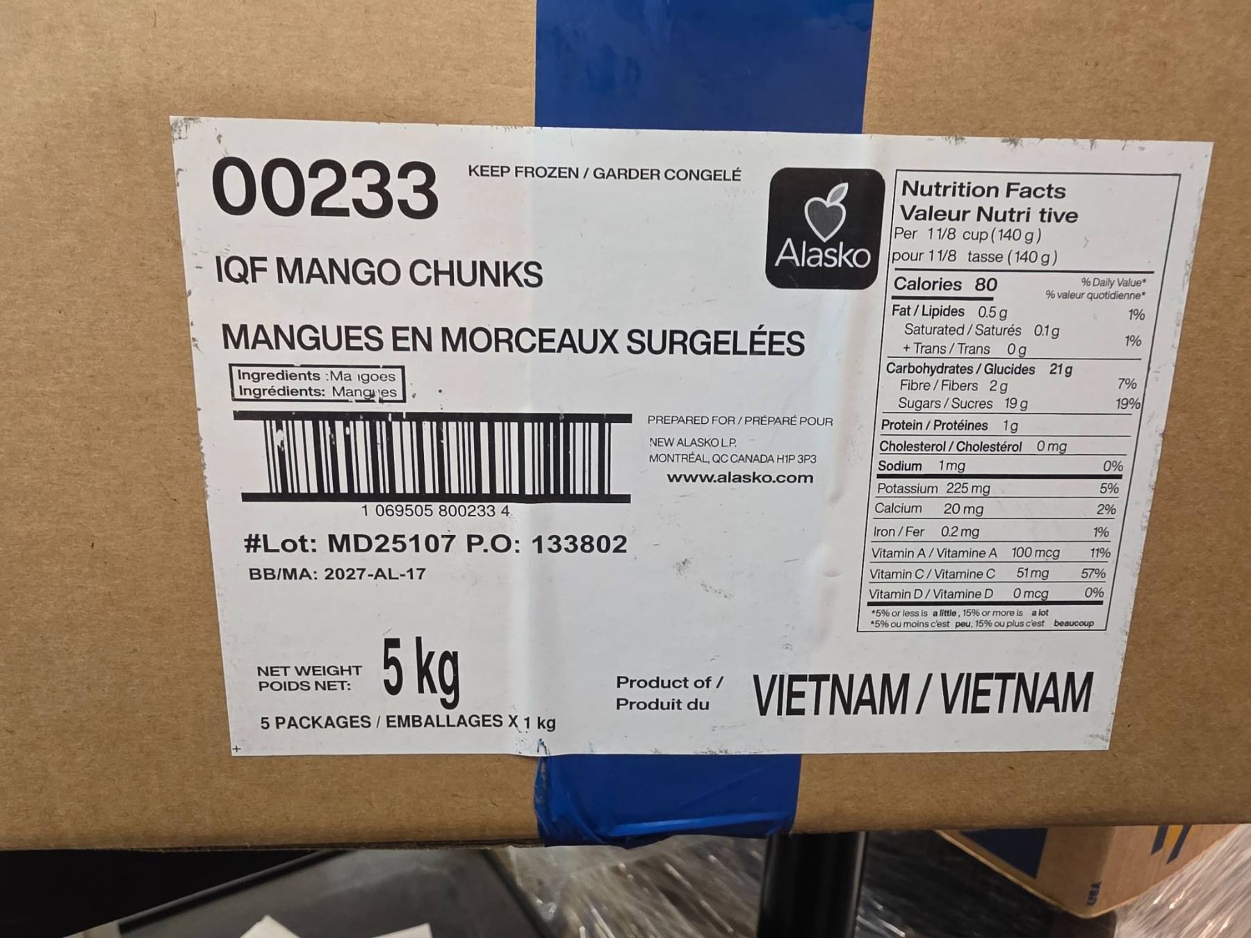 Lot 2261 Alasko IQF Mango Chunks, 5 kg, Lot MD25107, Vietnam