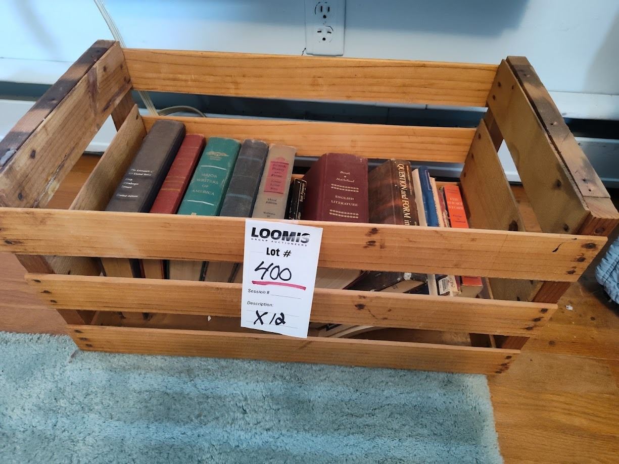 Lot 400H ANTIQUE WOOD FINISHED CRATE W OLD BOOKS
