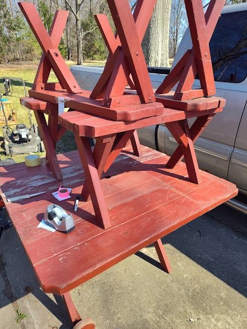 Lot 266G 5 PC REDWOOD PICNIC TABLE SET