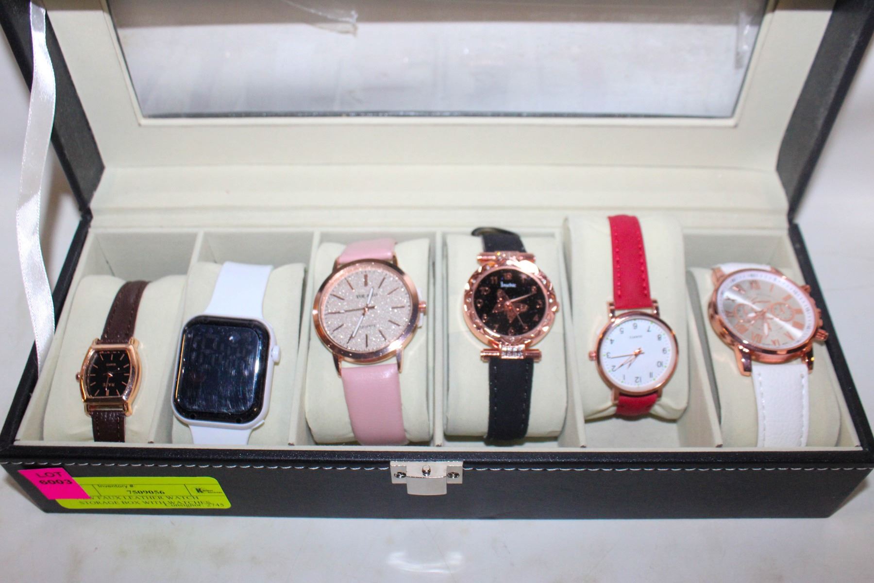 Lot 6003 NEW FAUX LEATHER WATCH STORAGE BOX WITH WATCHES