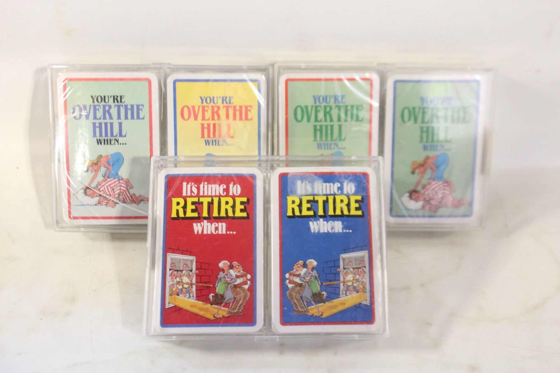 DUAL PACKS PLAYING CARDS "IT'S TIME TO RETIRE WHEN…." & 'YOU'RE OVER THE HILL"