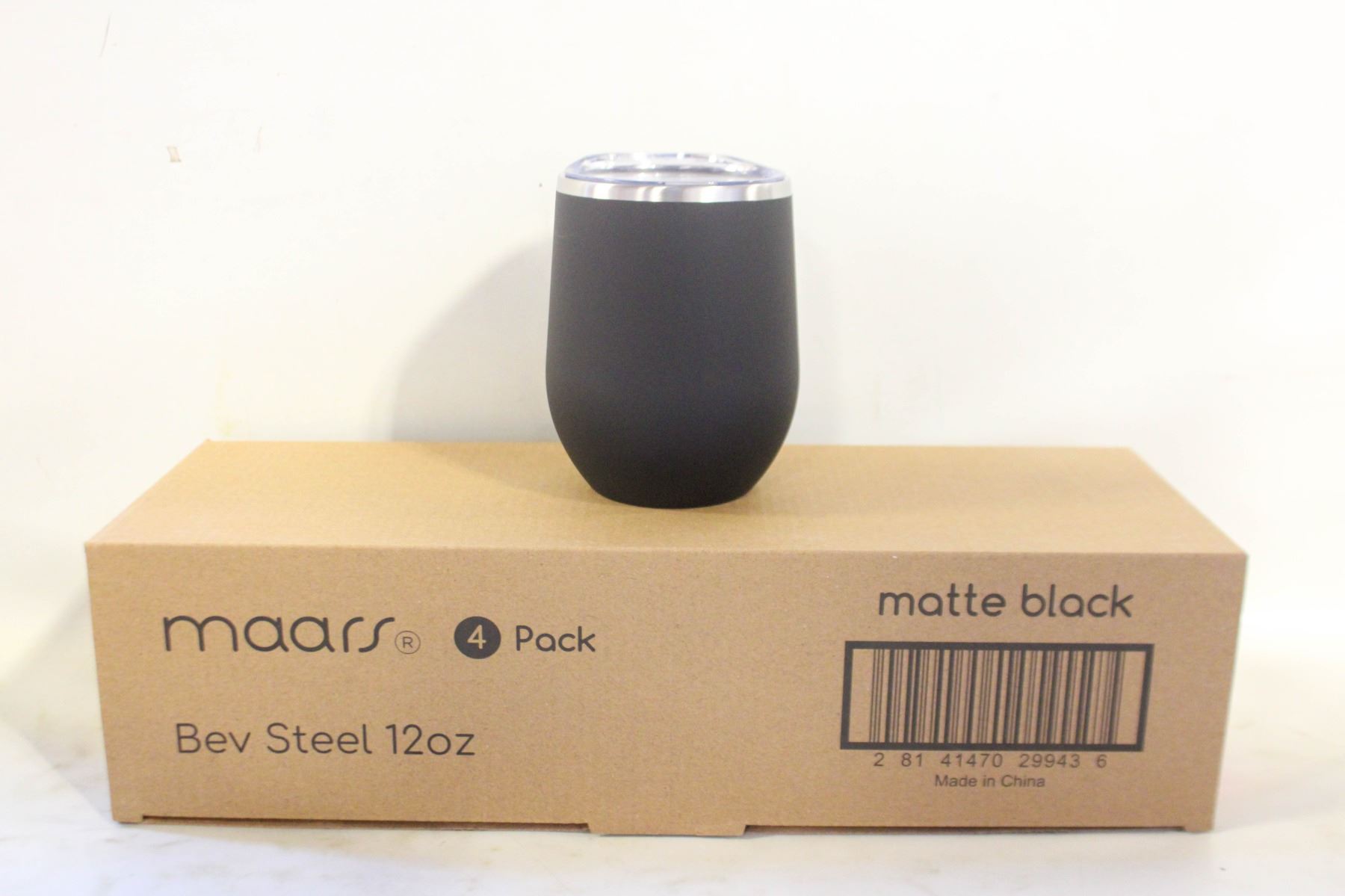 Lot 6061 NEW 4PK MAARS MATTE BLACK BEV STEEL 12 OZ MUGS