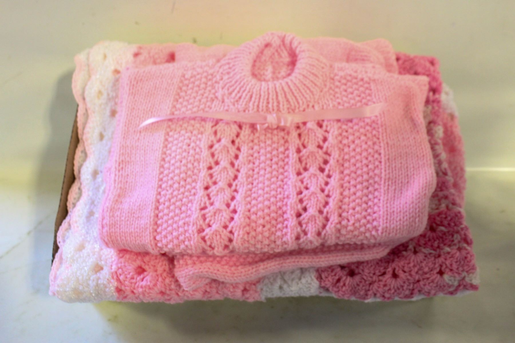 Lot 6088 NEW HAND-MADE KNITTED PINK BABY OUTFIT & BLANKETS,