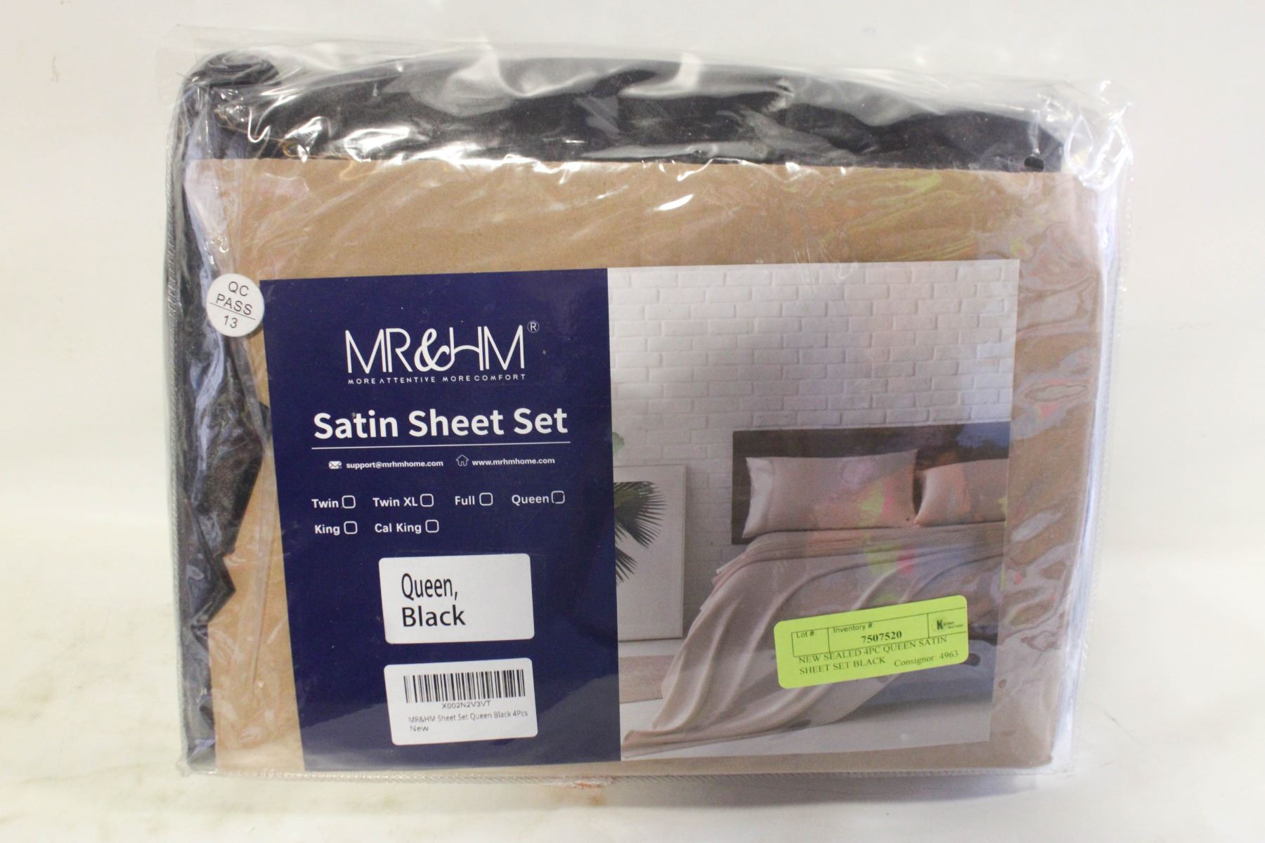 Lot 6241 NEW SEALED 4PC QUEEN SATIN SHEET SET BLACK