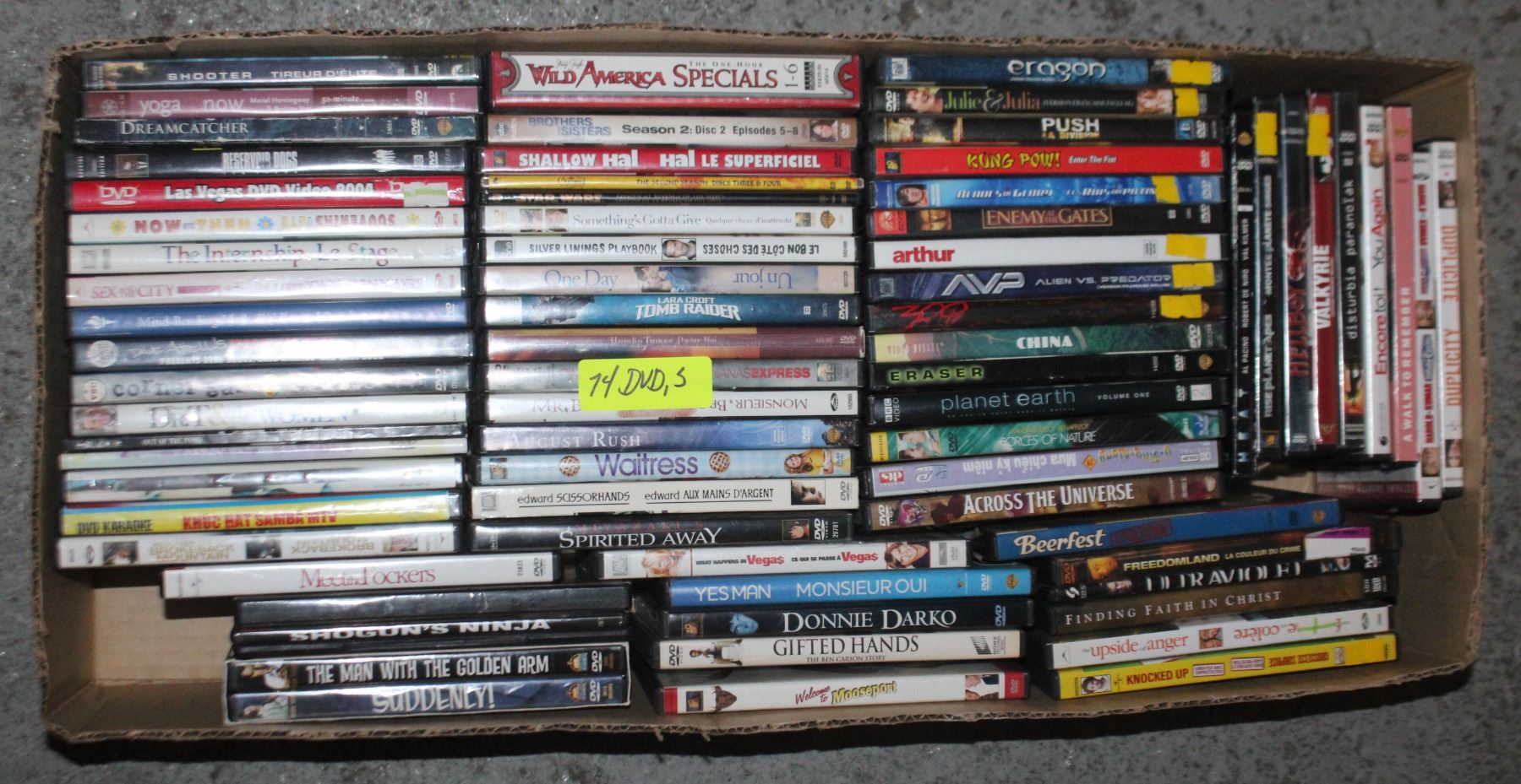 BOX OF APPROX 74 DVDS