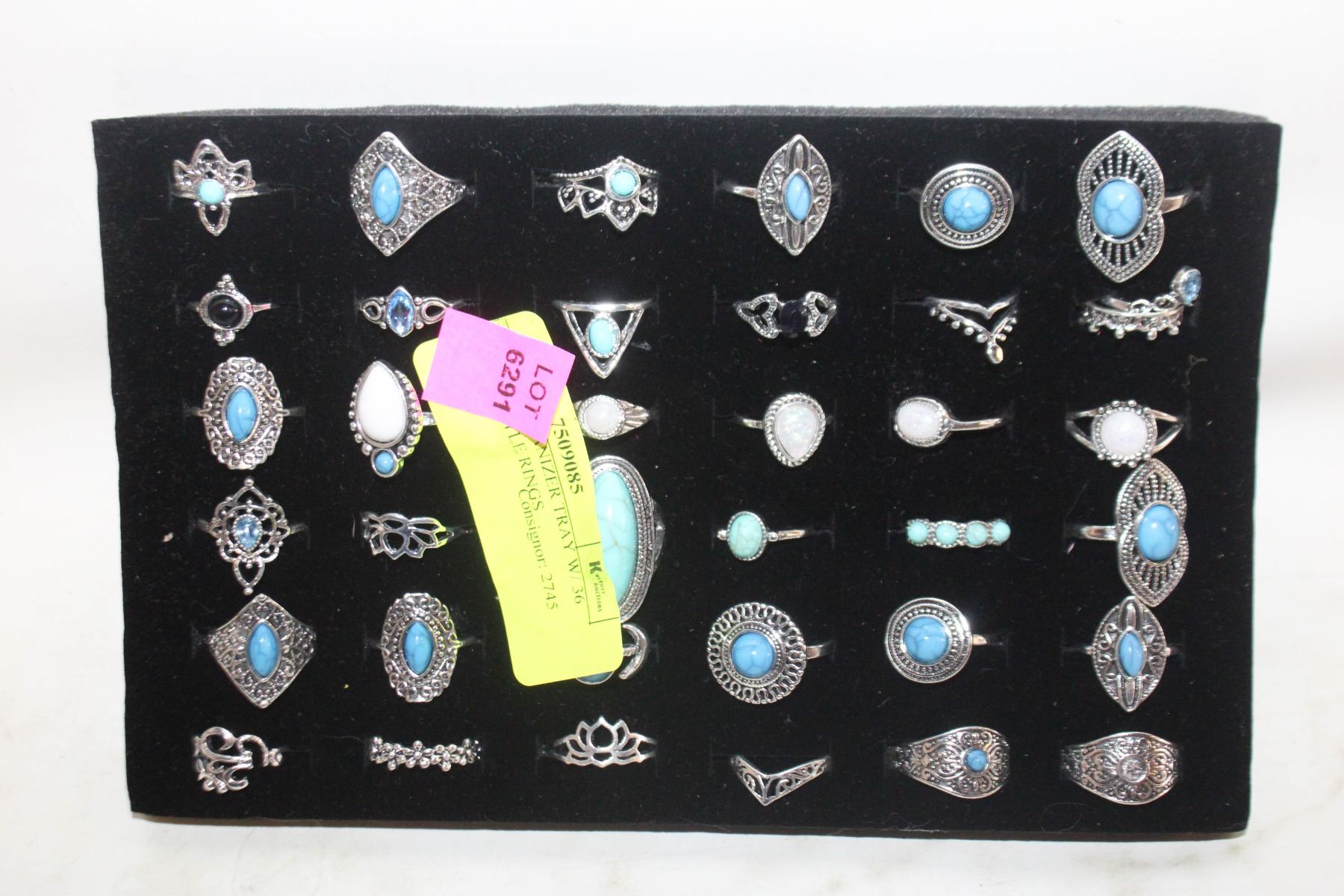 Lot 6291 JEWELRY ORGANIZER TRAY W/ 36 TURKISH STYLE RINGS