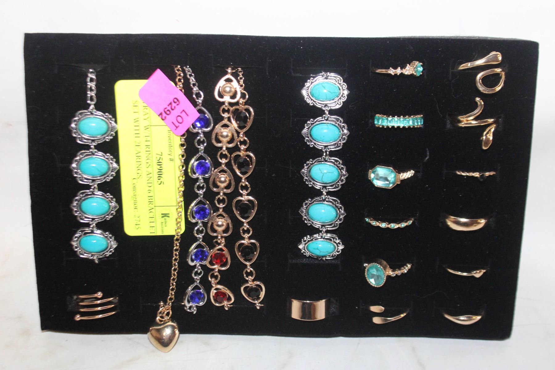 TRAY W/14 RINGS AND 6 BRACELETS SET WITH 2EARINGS