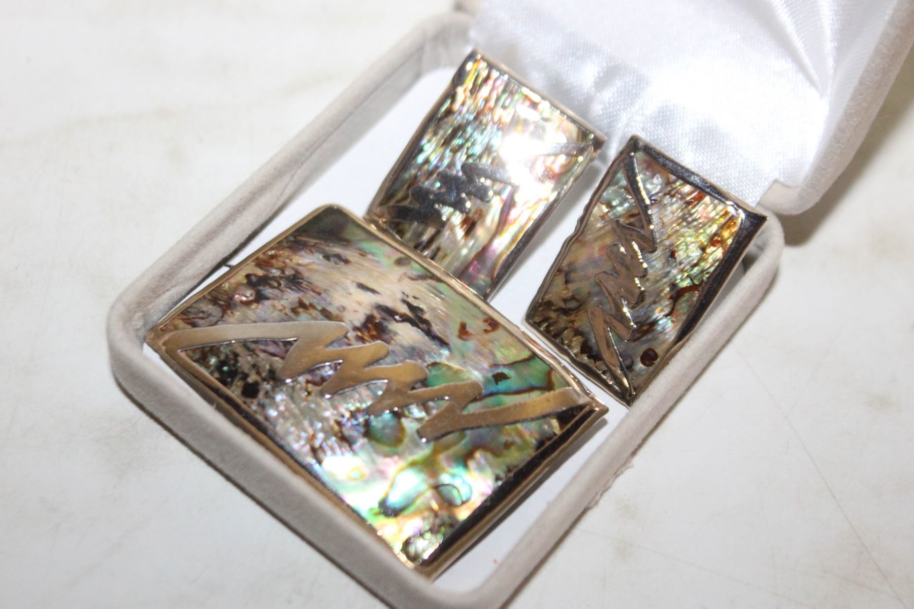 Lot 6317 ESTATE ABALONE EARRINGS & BROOCH SET