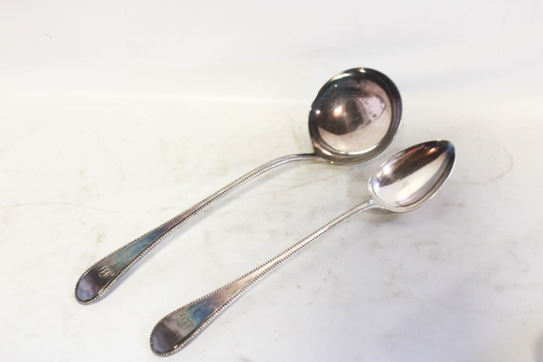 ANTIQUE SILVER PLATE LARGE LADLE & SPOON