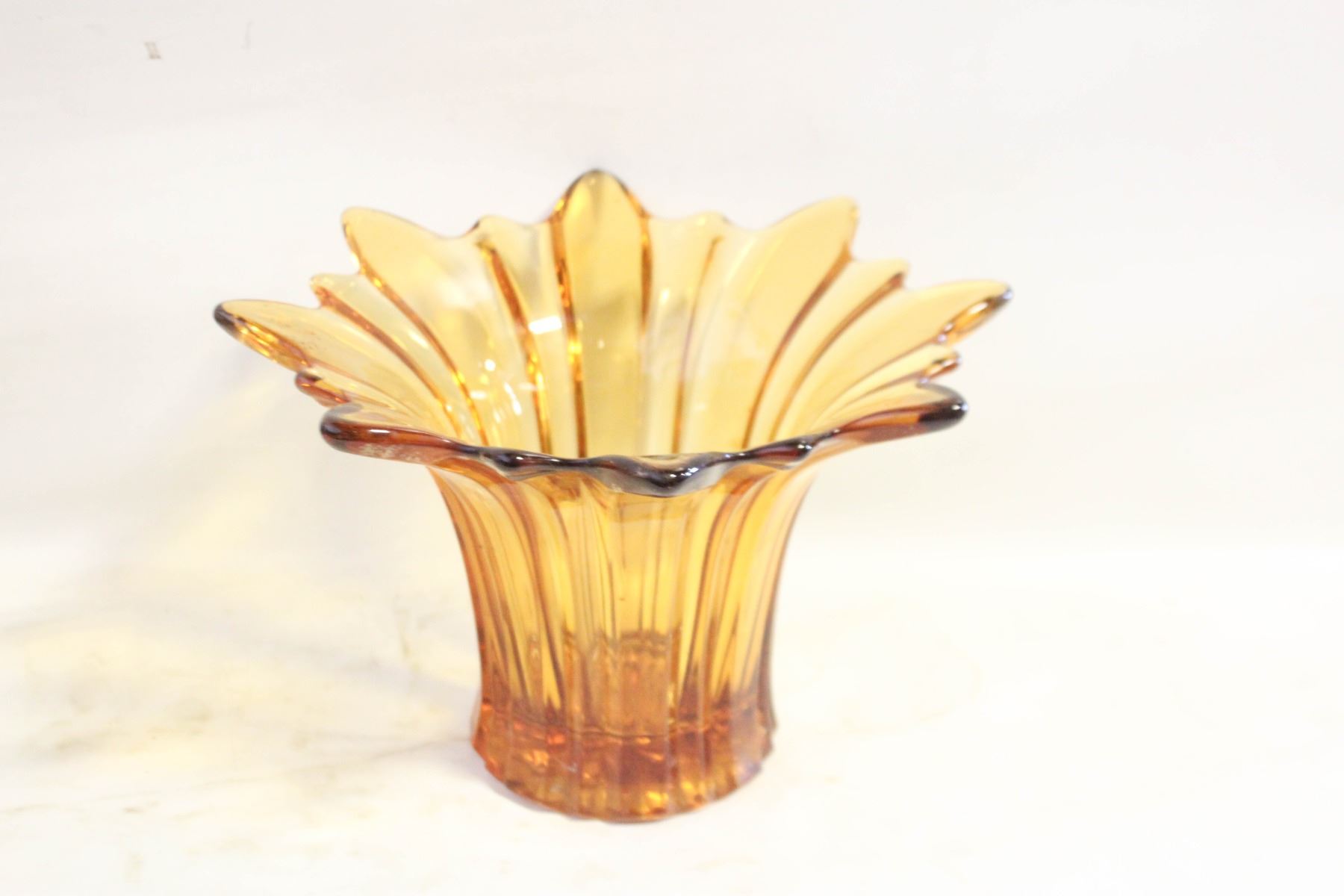 Lot 6428 VINTAGE GLASS VASE/BOWL 6” H AMBER GLASS C. 1970S