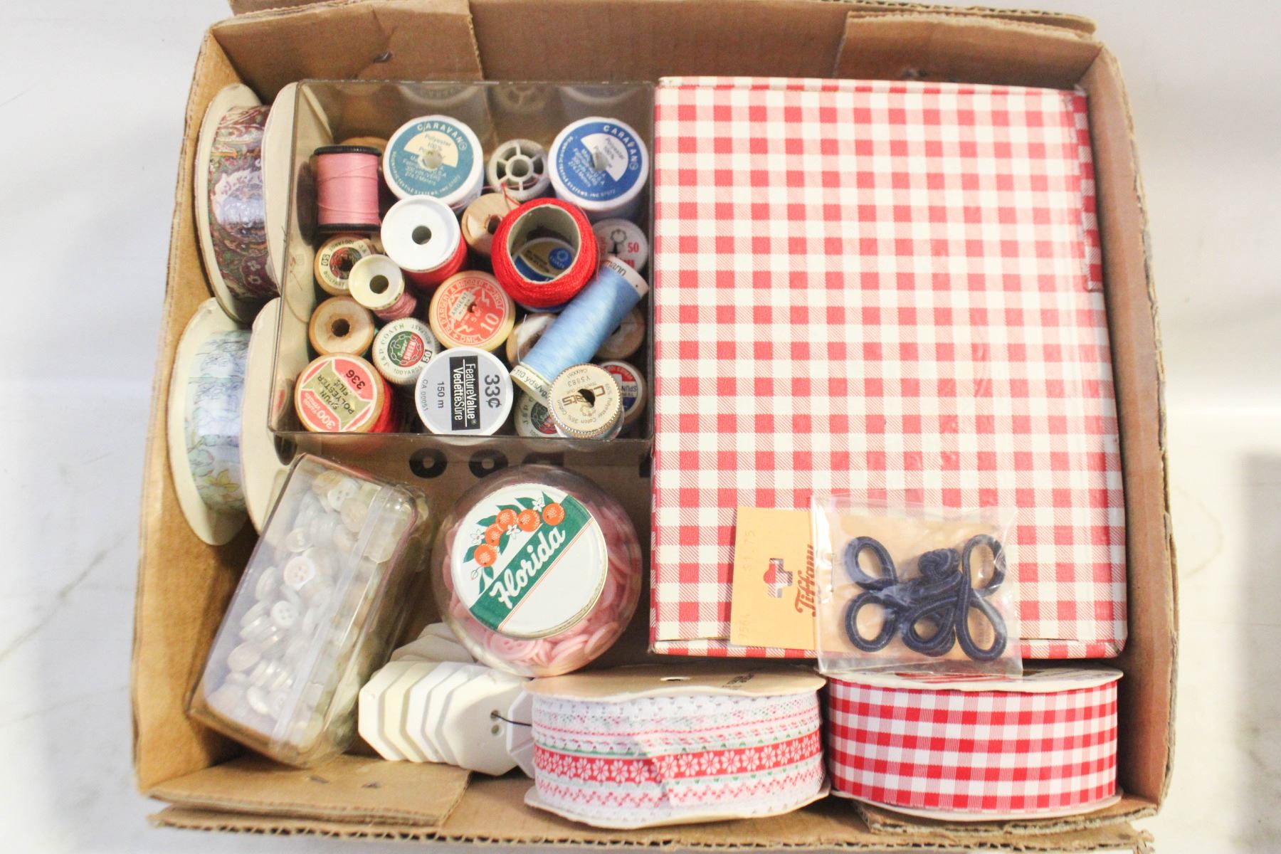 Lot 6465 FLAT OF MISC SEWING ITEMS INC THREAD,