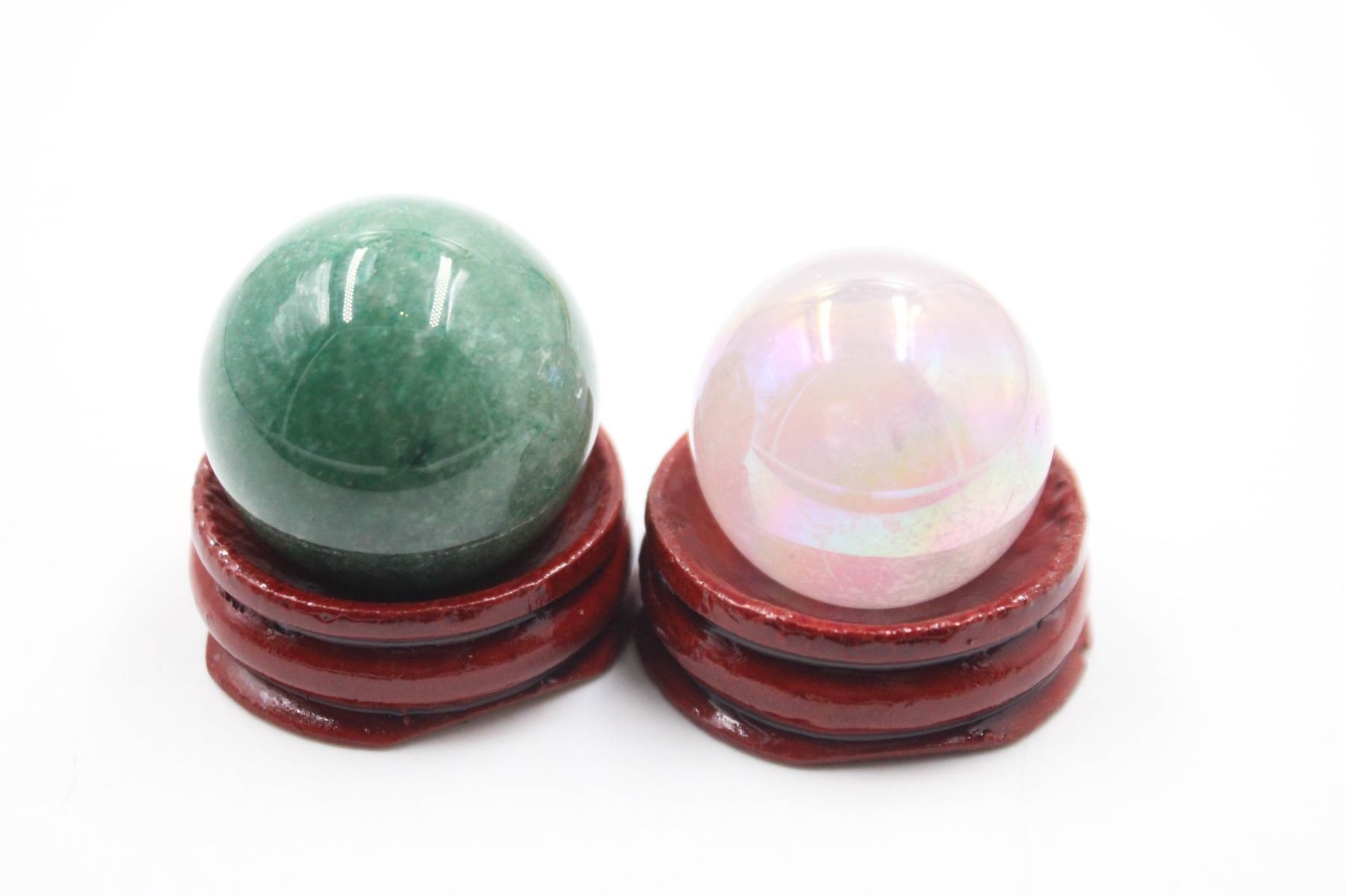 Lot 6473 #214-NATURAL GREEN AVENTURINE & AURA QZ SPHERE BAL