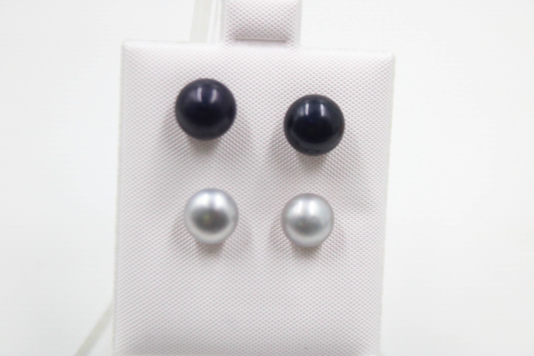 .925 STERLING SILVER/ 7.5-8MM /GRAY & BLACK /2PAIRS