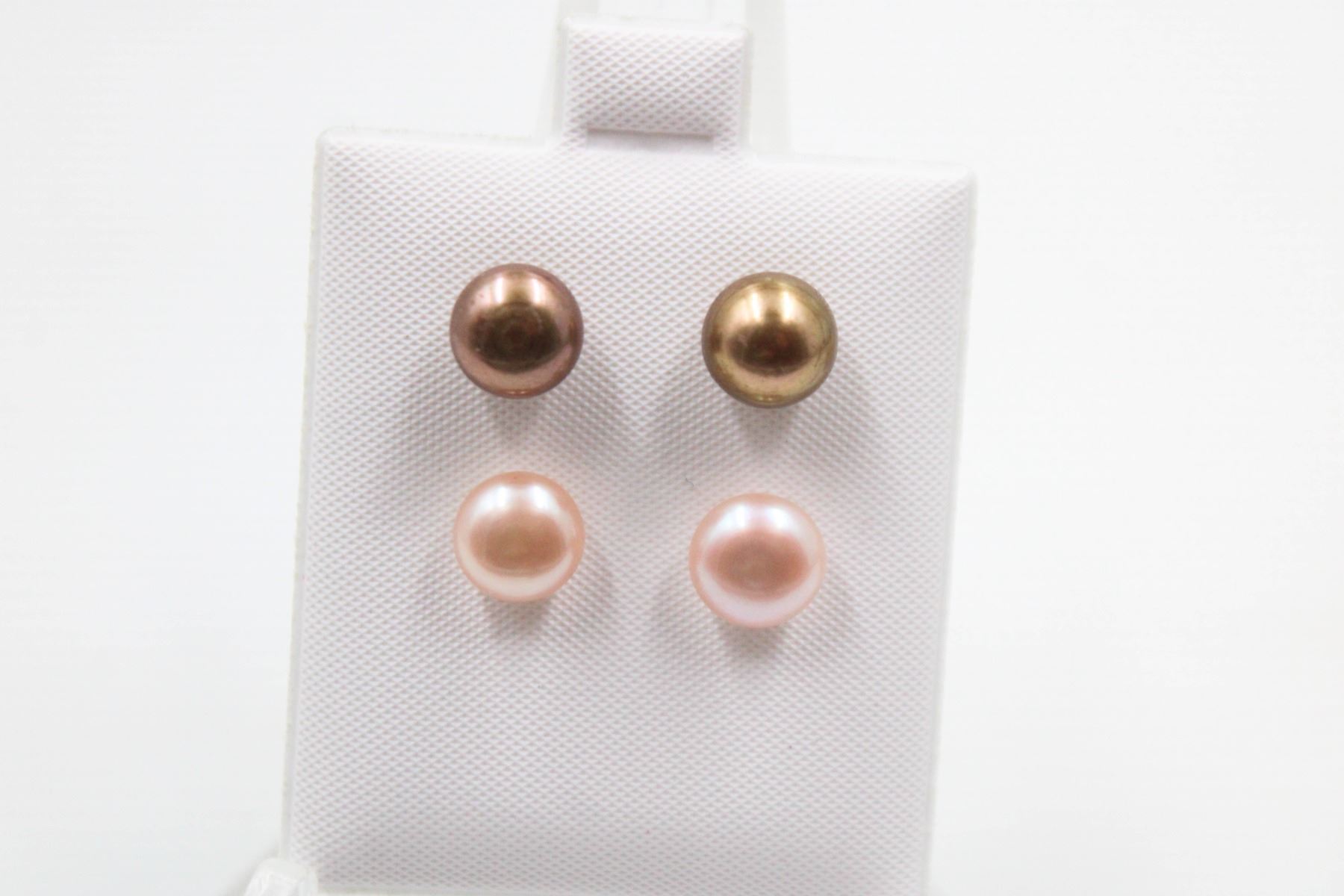 .925 STERLING SILVER/ 7.5-8MM /BROWN & LAVENDER PINKISH /2PAIRS