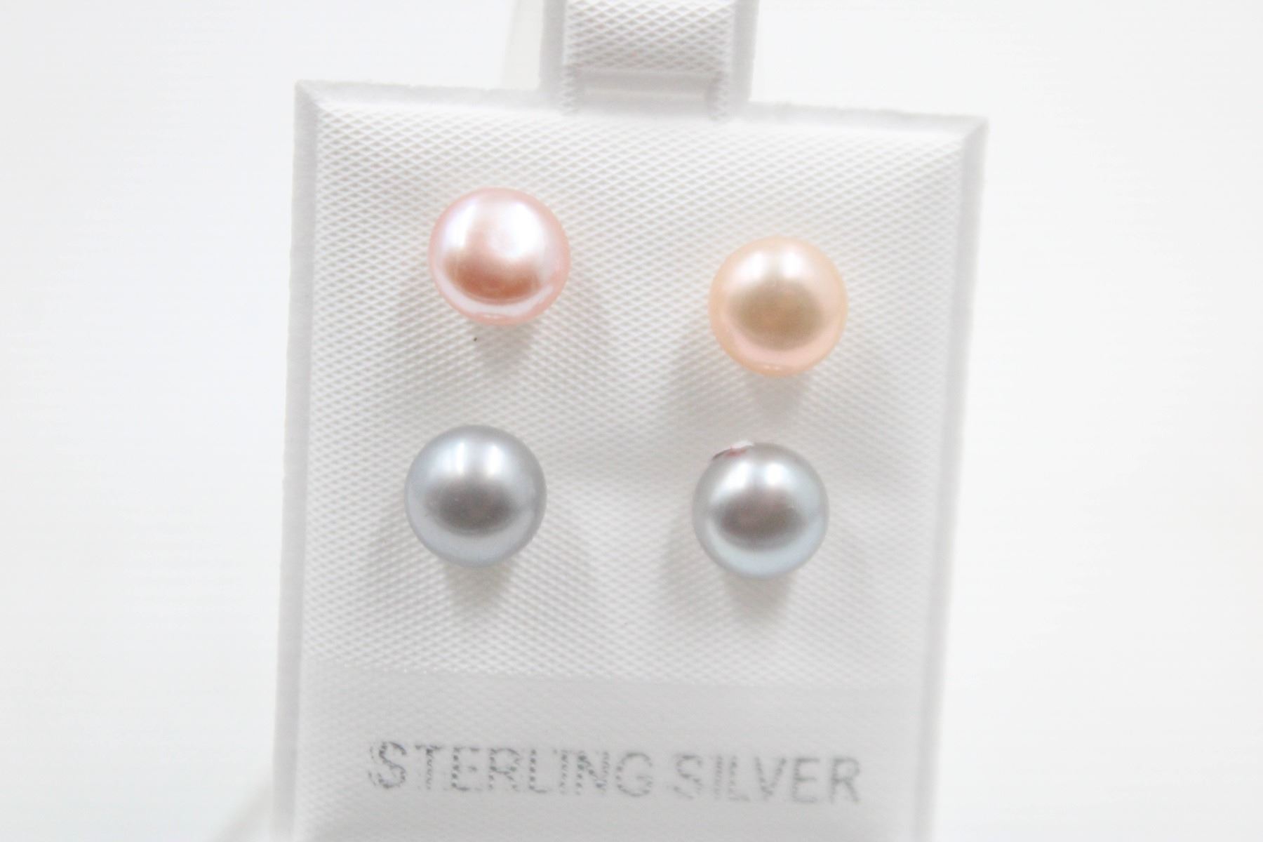 .925 STERLING SILVER/ 7.5-8MM /GRAY & PINK/2PAIRS