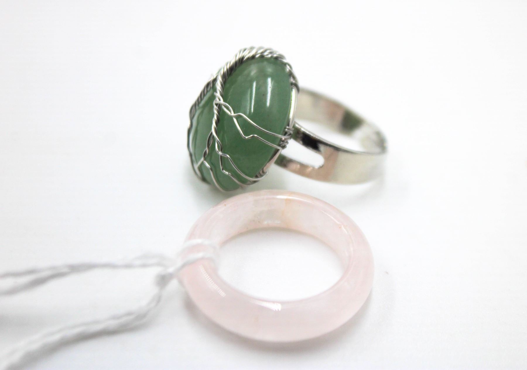 Lot 6533 #238- NATURAL AVENTURINE & ROSE QUARTZ RING 2PCS