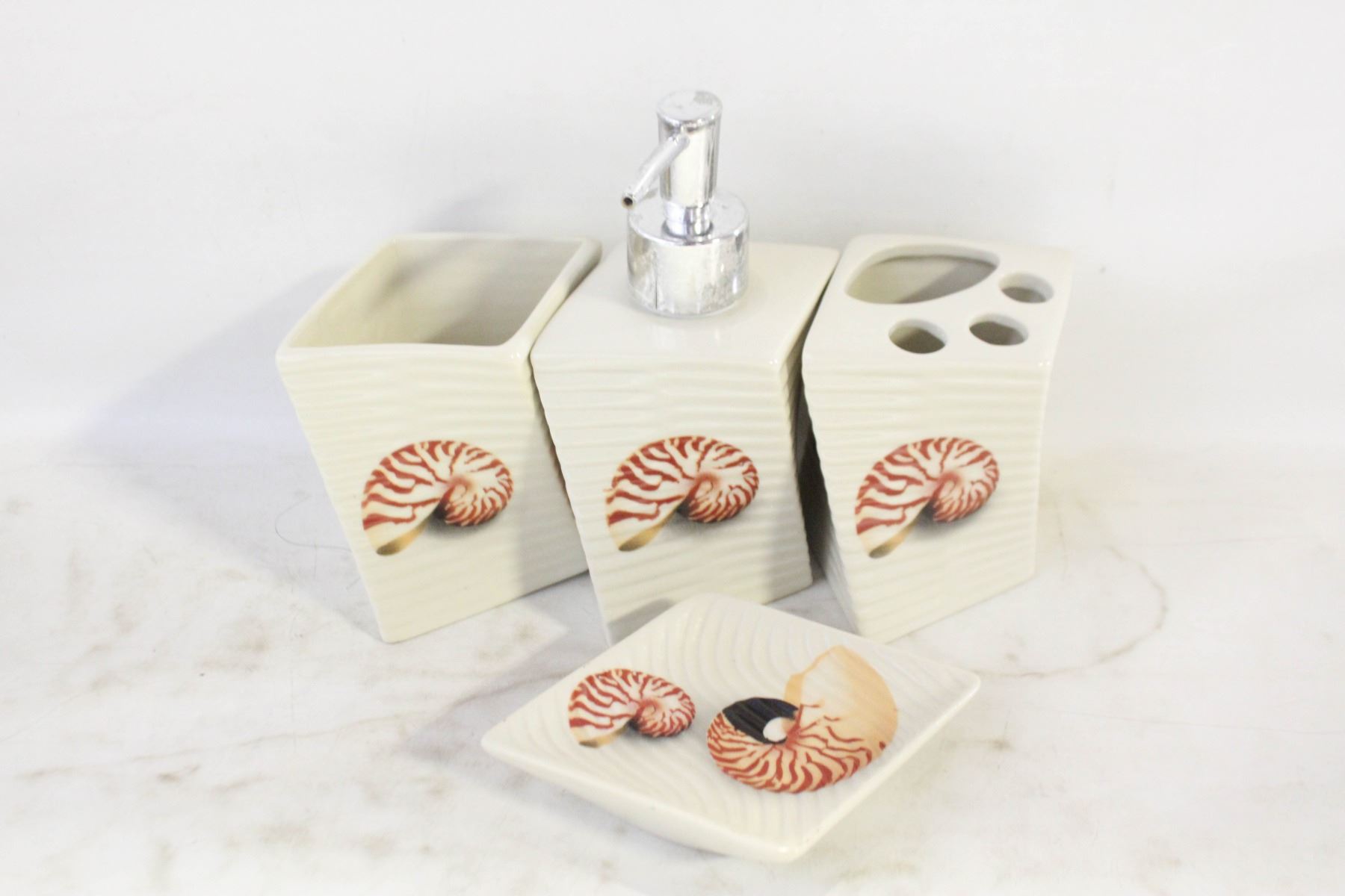 CERAMIC "SEA SHELL" 4 PIECE BATHROOM SET
