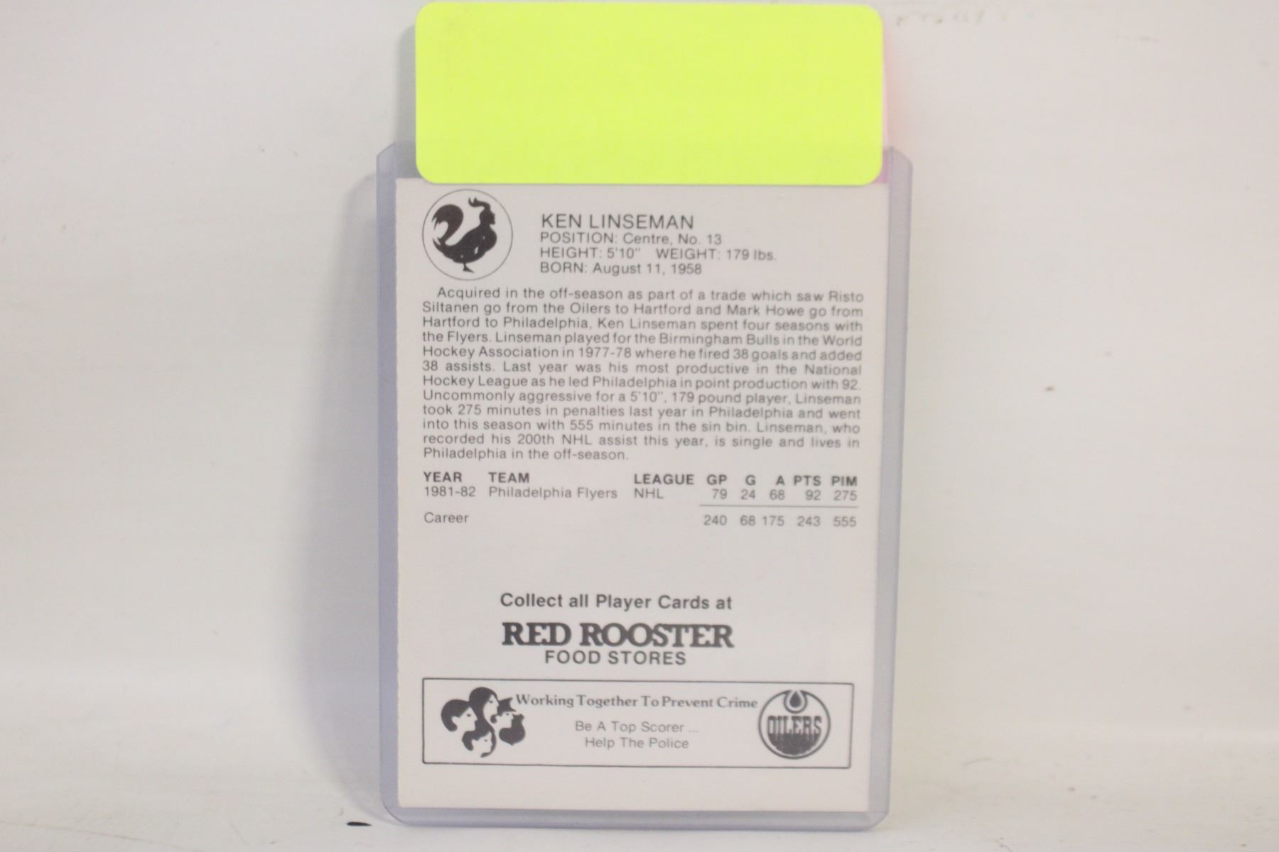 KEN LINSEMAN OILERS ROOKIE PRINT SIGNATURE