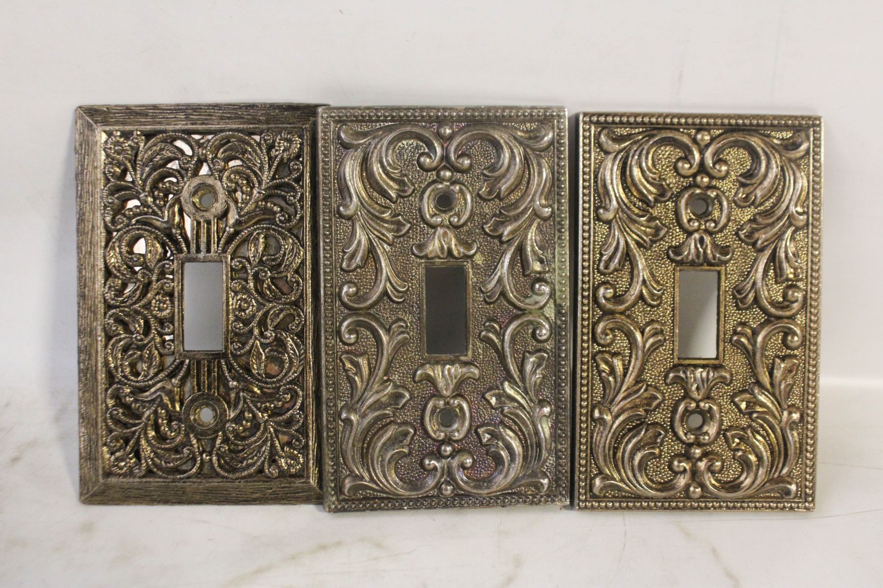 3 VINTAGE ORNATE METAL SWITCH COVERS
