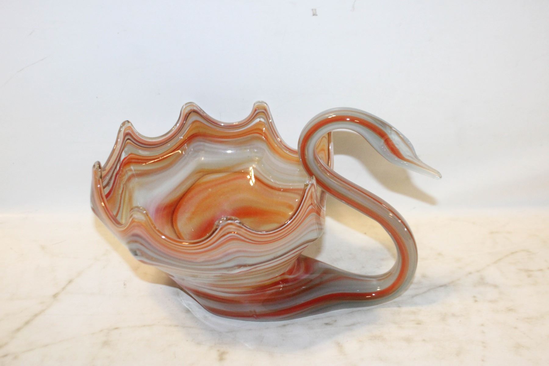 Lot 7076 DECORATIVE MURANO STYLE SWAN ART GLASS BOWL