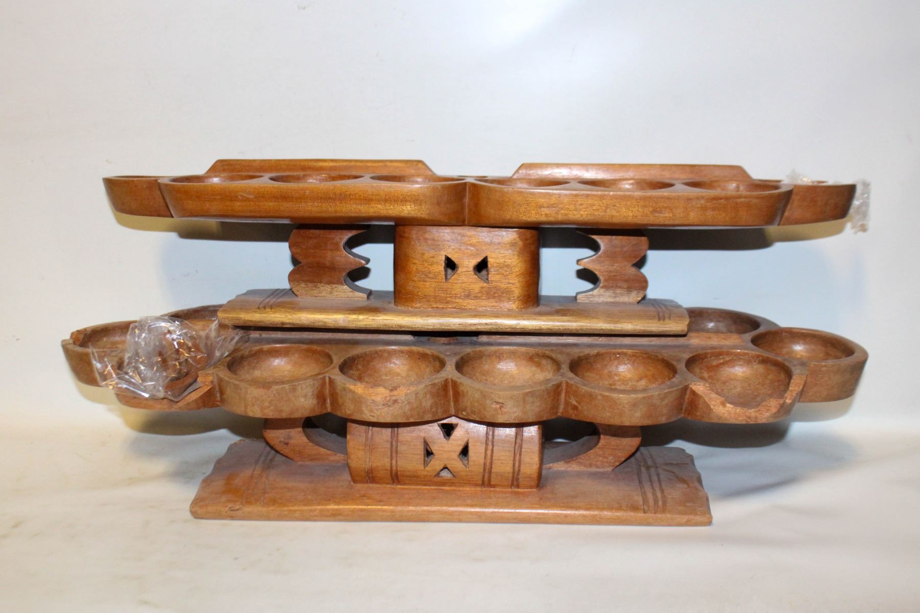 Lot 7108 2 HAND CARVED MANCALA BOARD GAMES (SOME DAMAGE)
