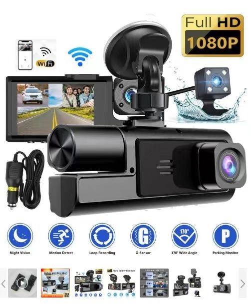 Lot 7144 NEW 3 CAMERAS WI-FI ENABLED DASHCAM HD 1080P