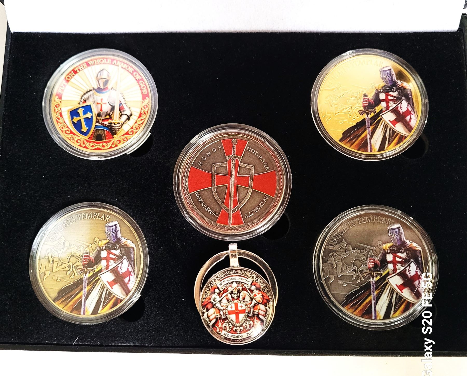 TEMPLAR TOKENS AND KEY RING IN DISPLAY BOX. COLLECTIBLES