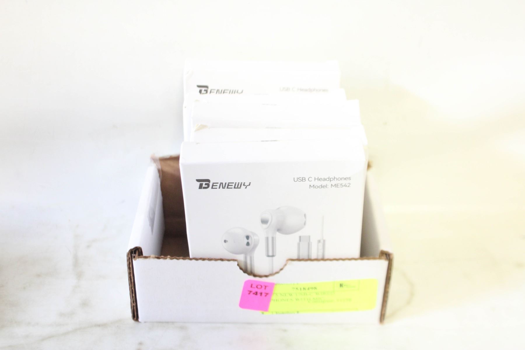 Lot 7417 LOT OF 5 NEW USB-C WIRED HEADPHONES WITH MIC,
