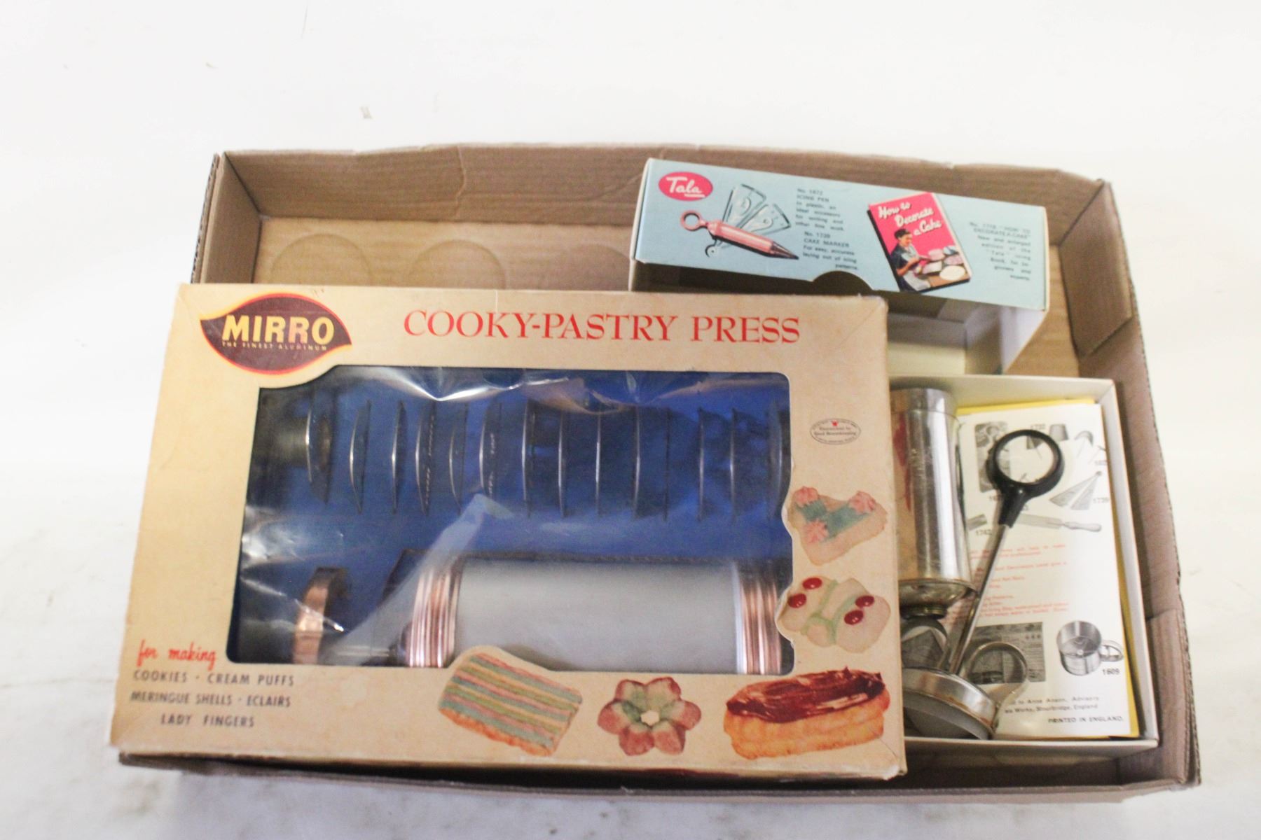 Lot 7434 VINTAGE BAKING IN A BOX- ICING & COOKIE PRESS