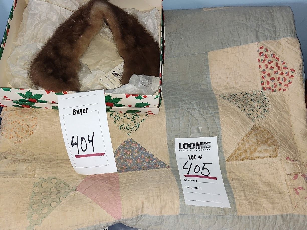 Lot 405H ANTIQUE QUILT & FUR / SOME WEAR ON THE QUILT