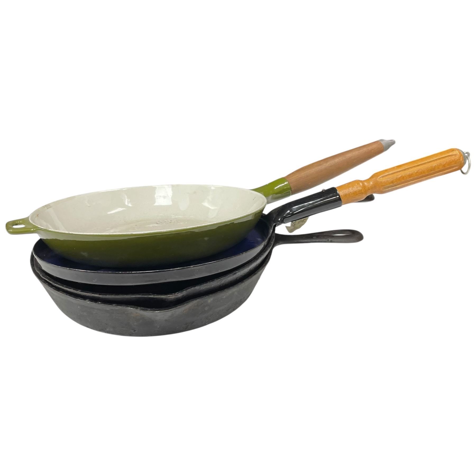 2 Cast Iron Pans 9.5" One Marked Smart Also 2 Enameled Pans