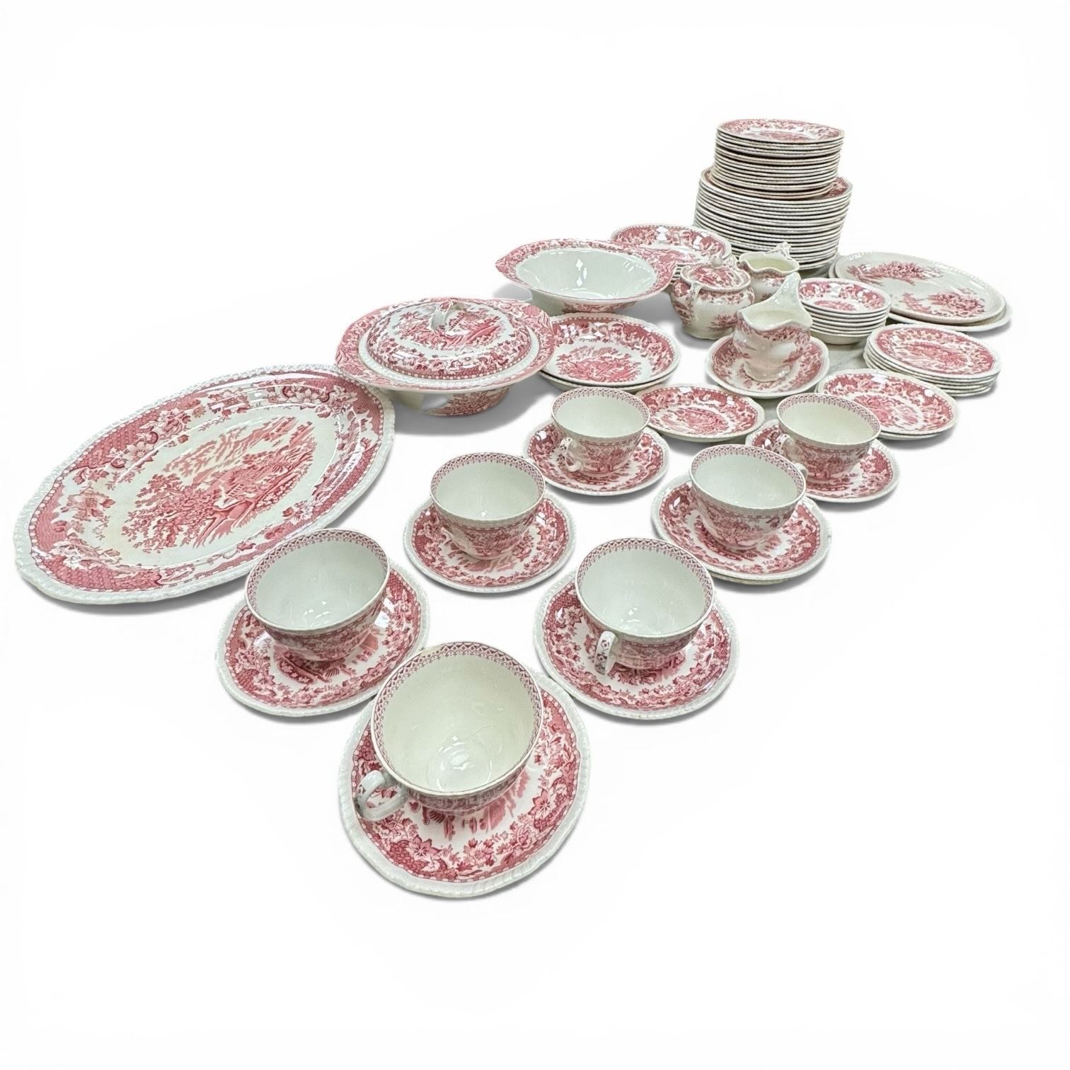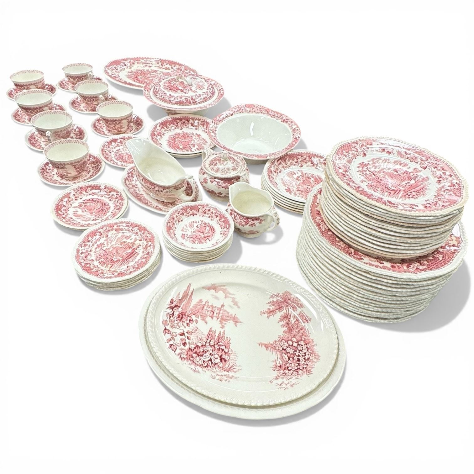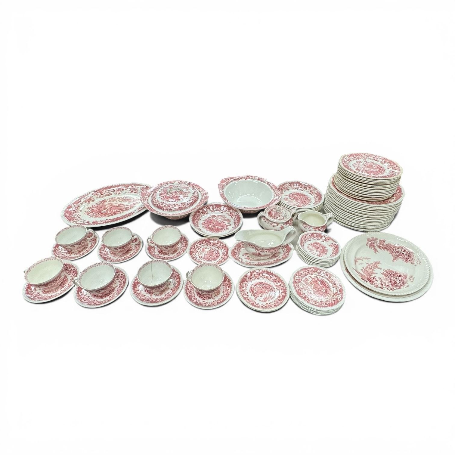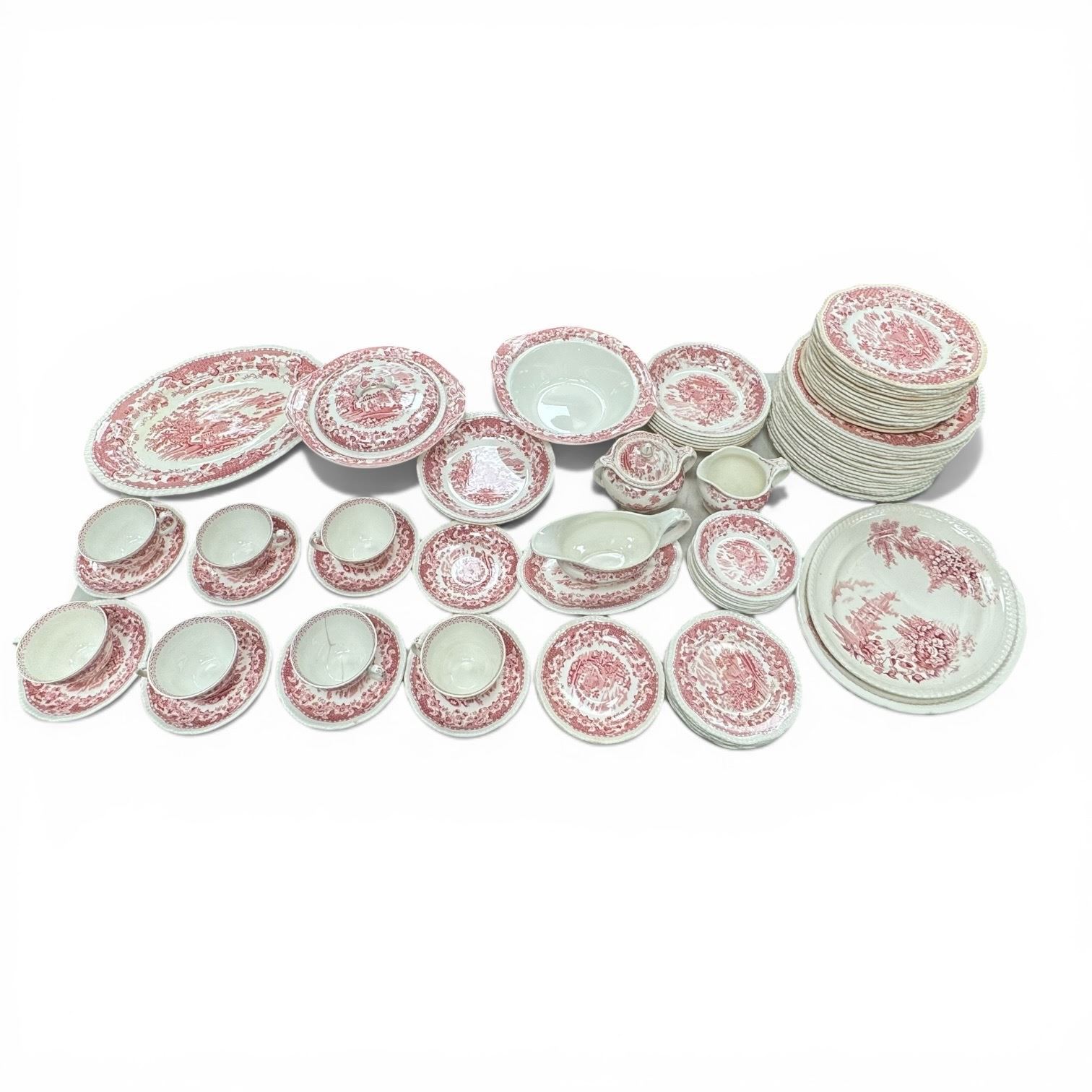 Woods & Sons Burslem Seaforth Pink Transfareware Approxiamtely 85 Pieces Shows Some Wear