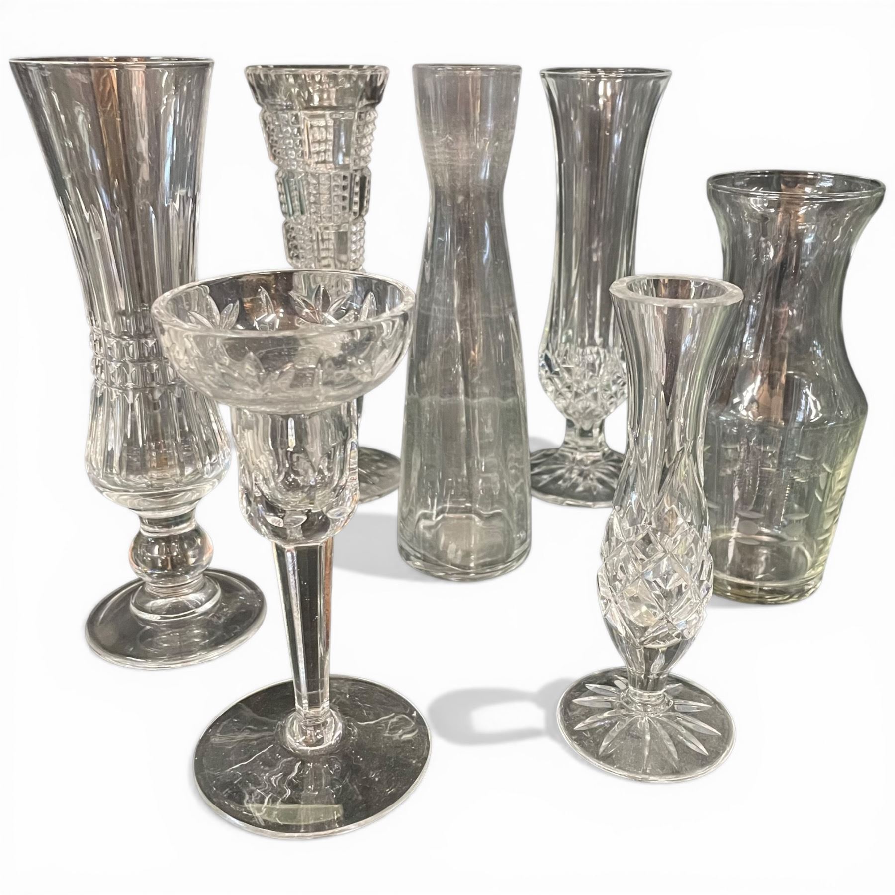 Assorted Glass and Crystal Vases Tallest is 8.25" Tall