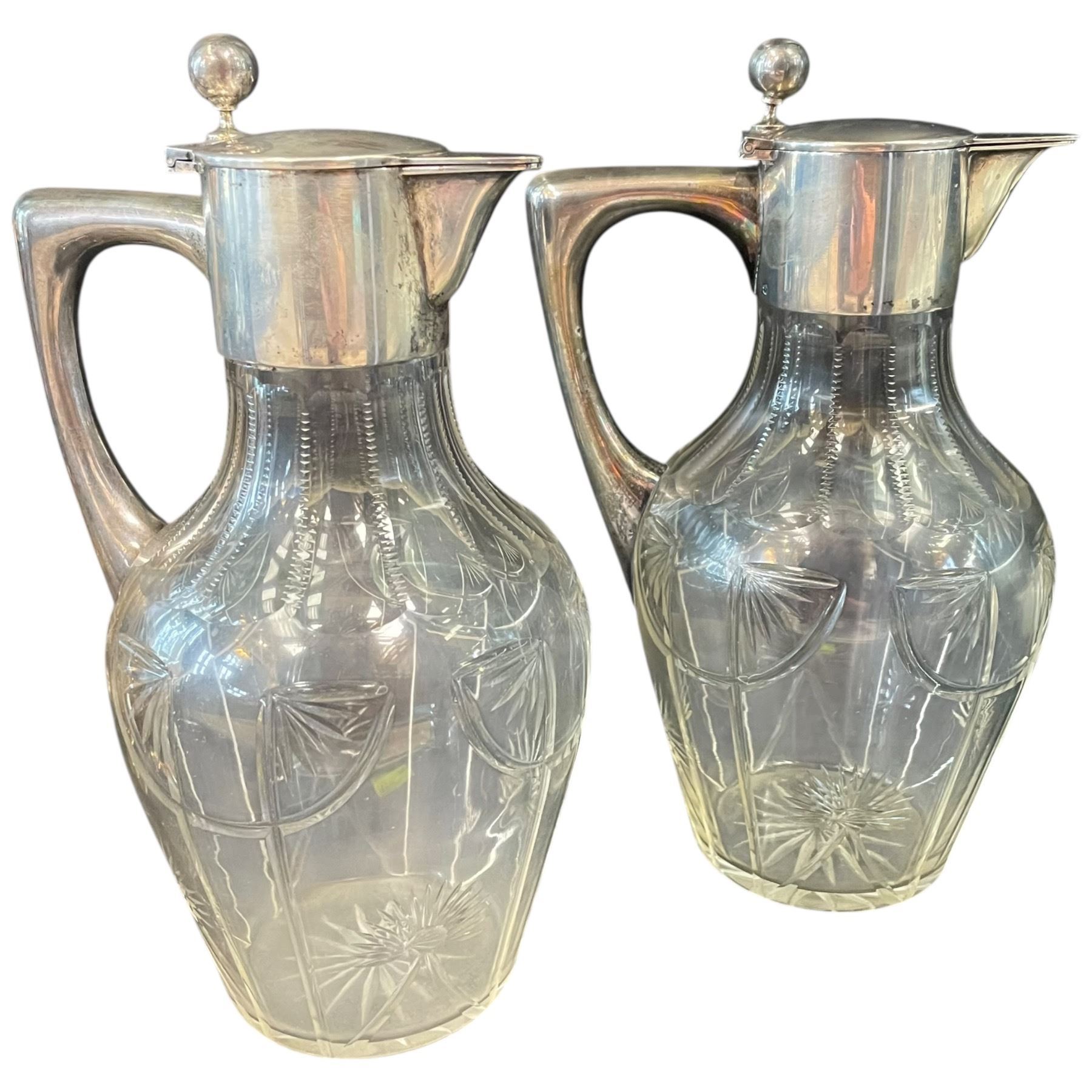 Pair of Vintage Jugendstil-Style Claret Jugs with .800 Hallmark Stamped