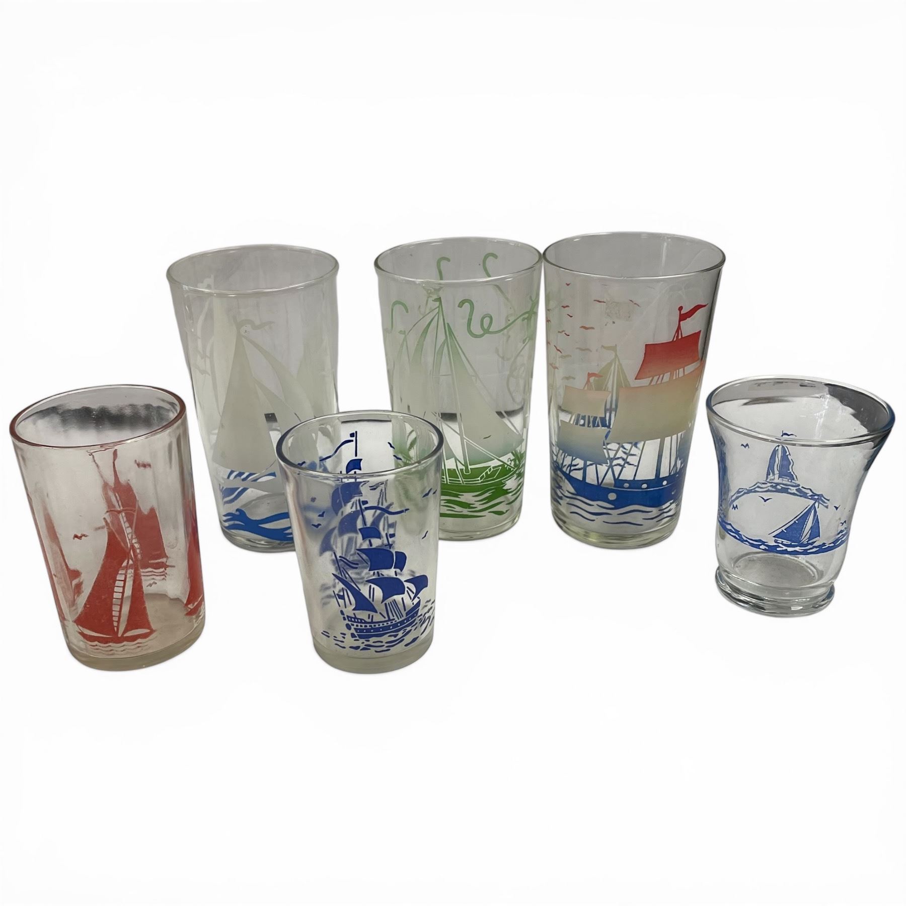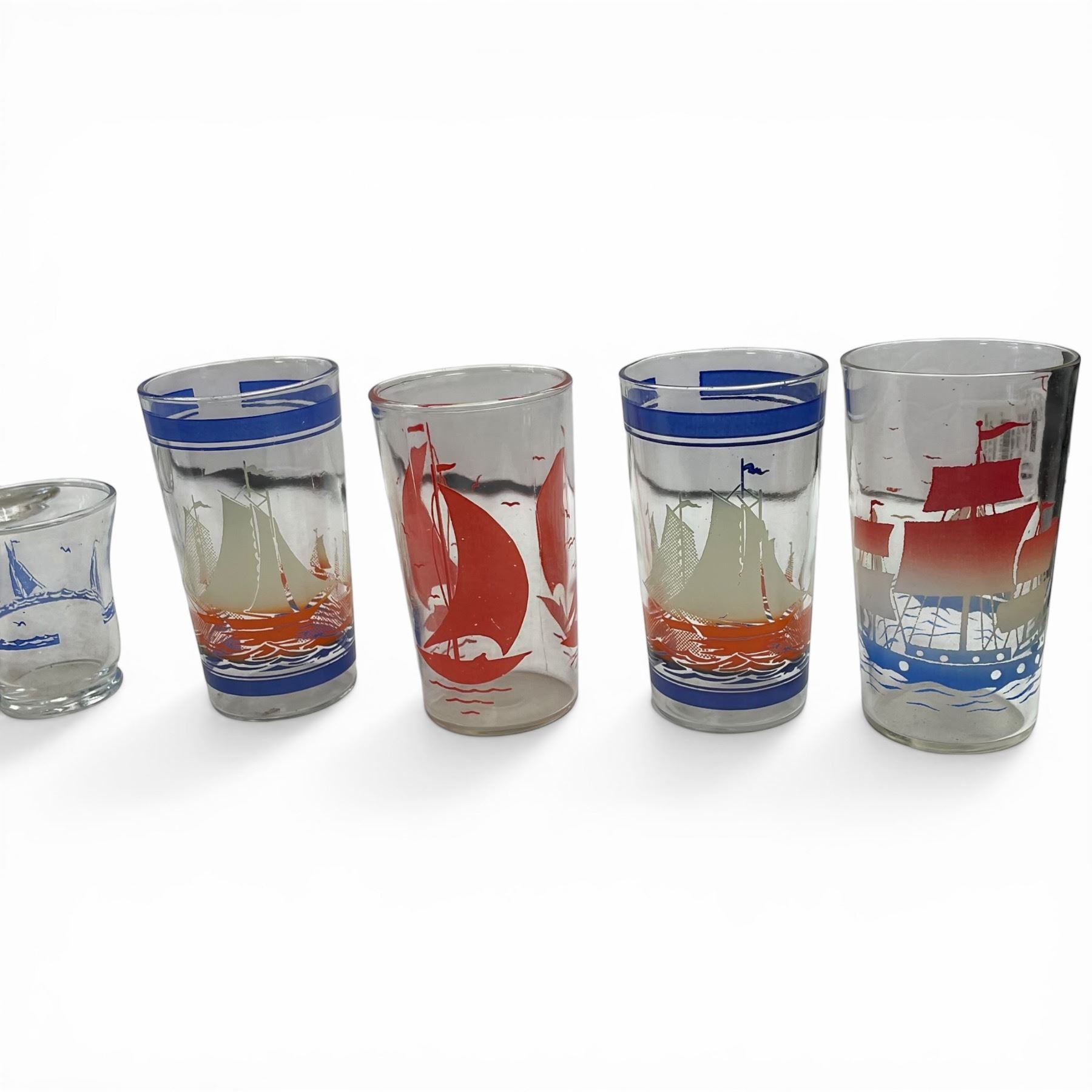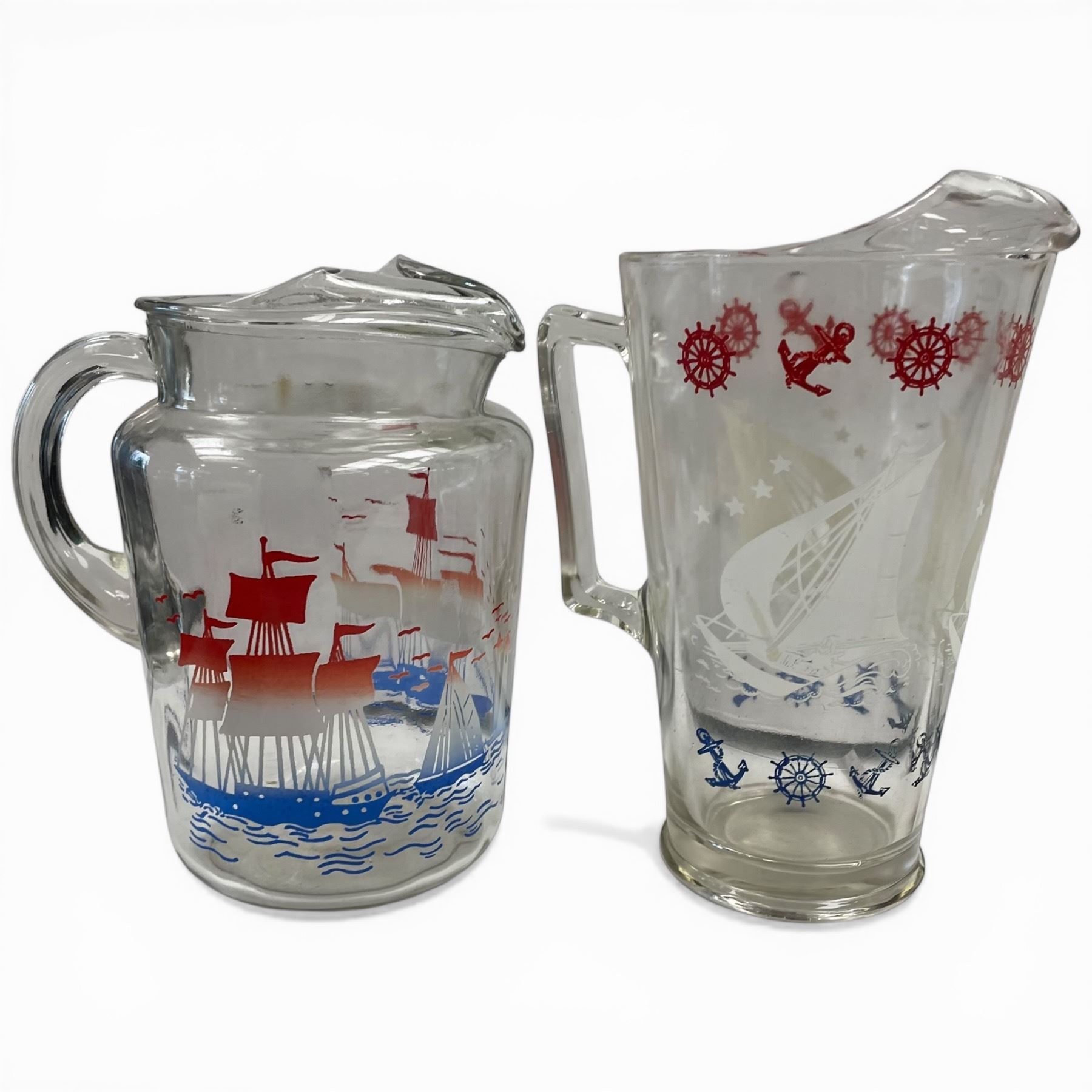Lot 590 Retro Late 20th Centruy 1980's Glass Sailboat Themed Glasses and Pitchers