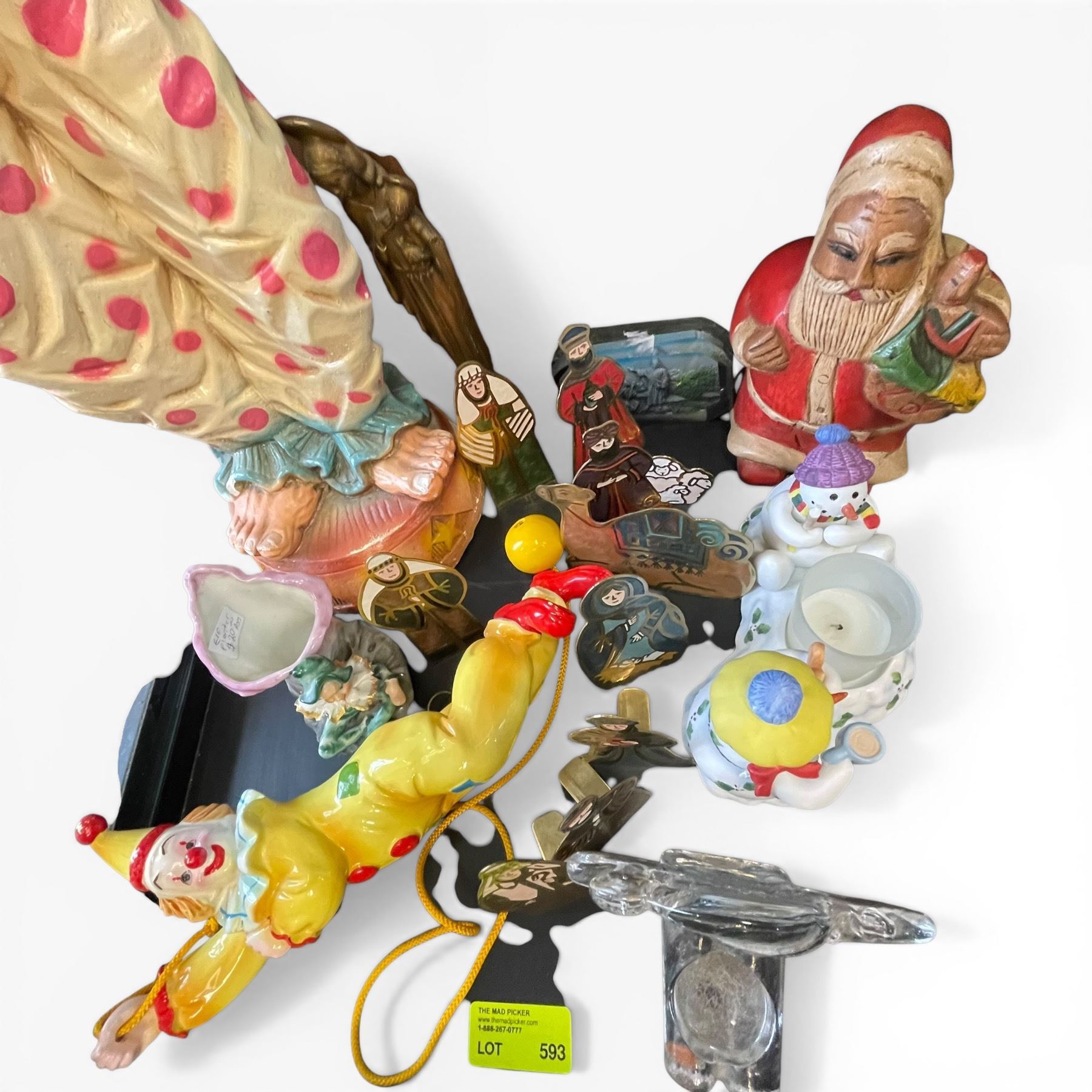Lot 593 Assorted Seasonal Chirstmas Decor and Collection of Clowns Large Clown is 25" Tall