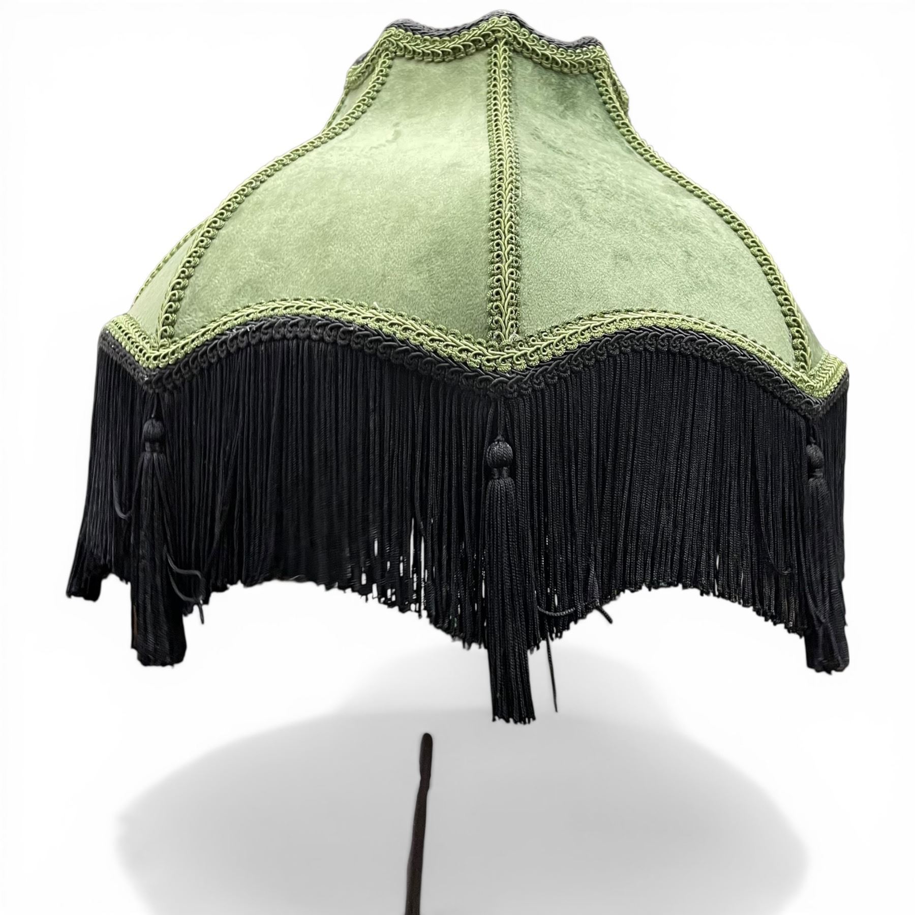 Green Velvet Lamp Shade with Fringe * 18" diameter x 8" deep