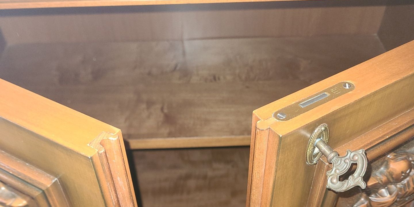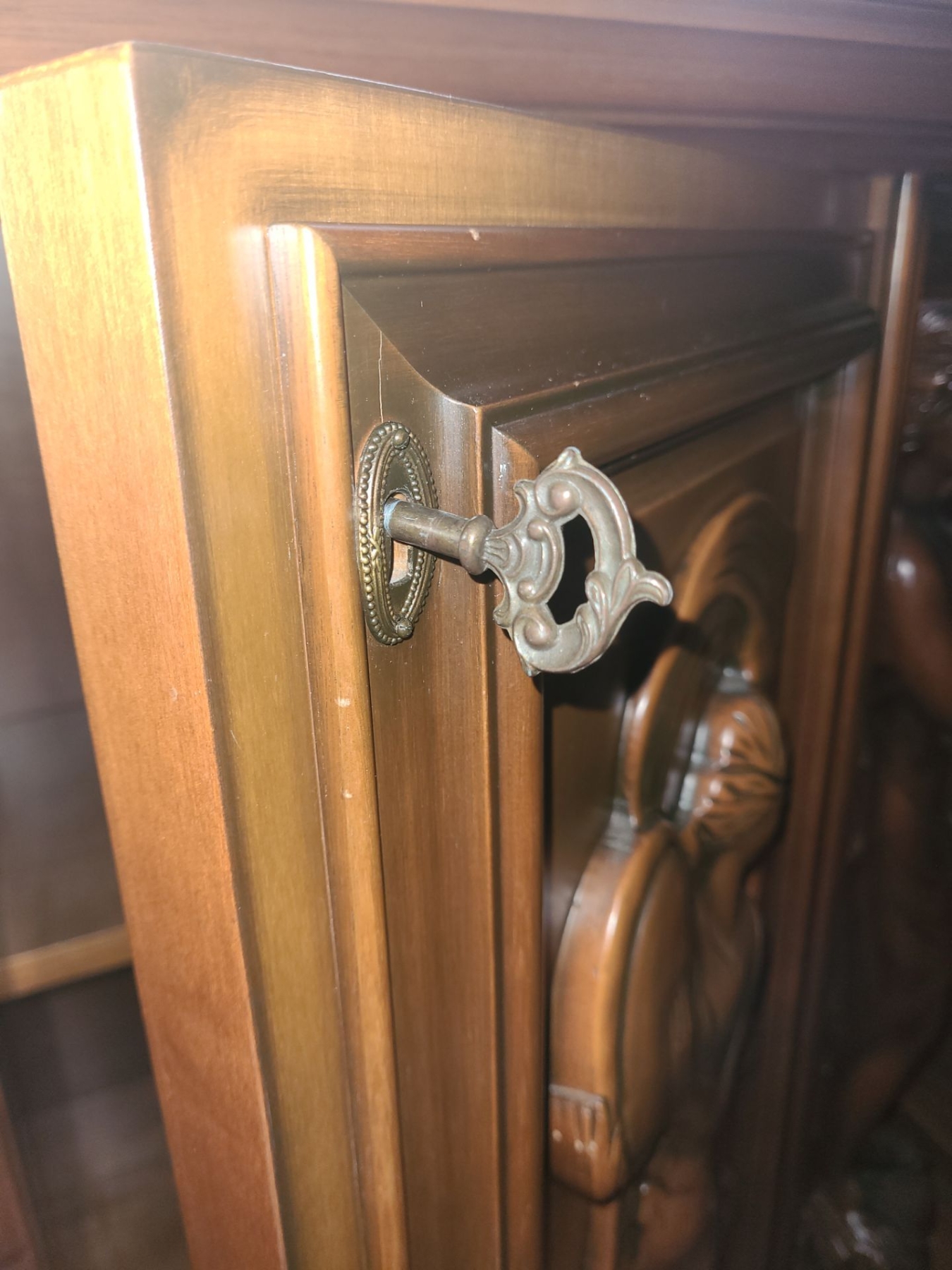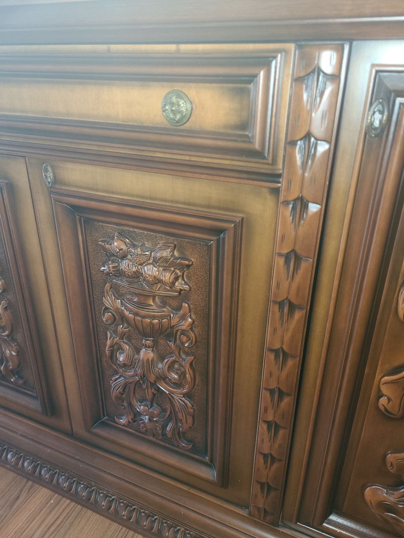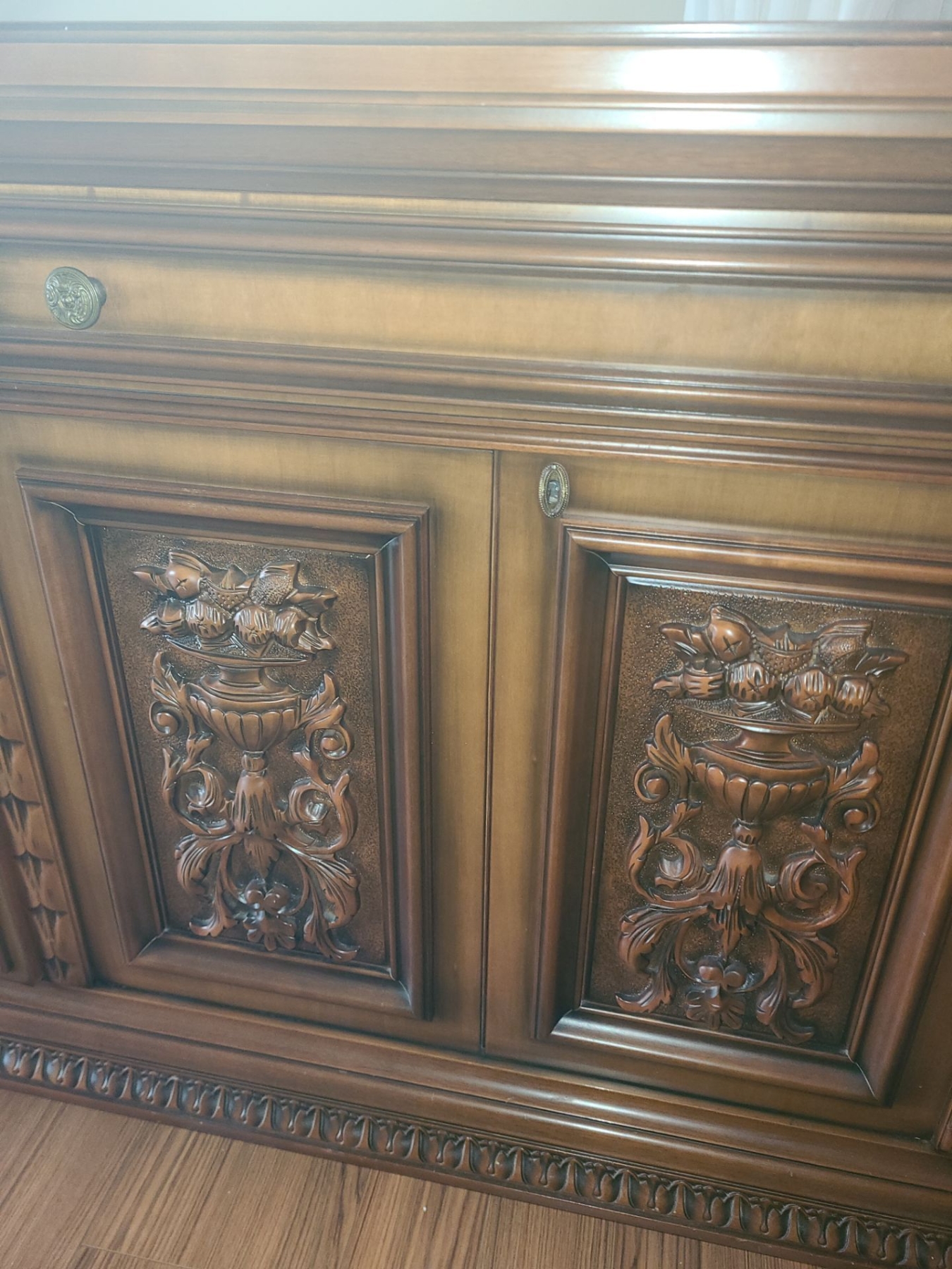 Lot 3 Vintage Italian Wood Sideboard w/ Carved Detail and Figures 79 W, 21 D, 37 T, Keys Included