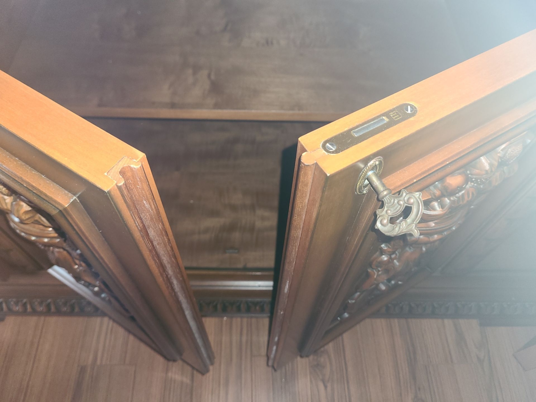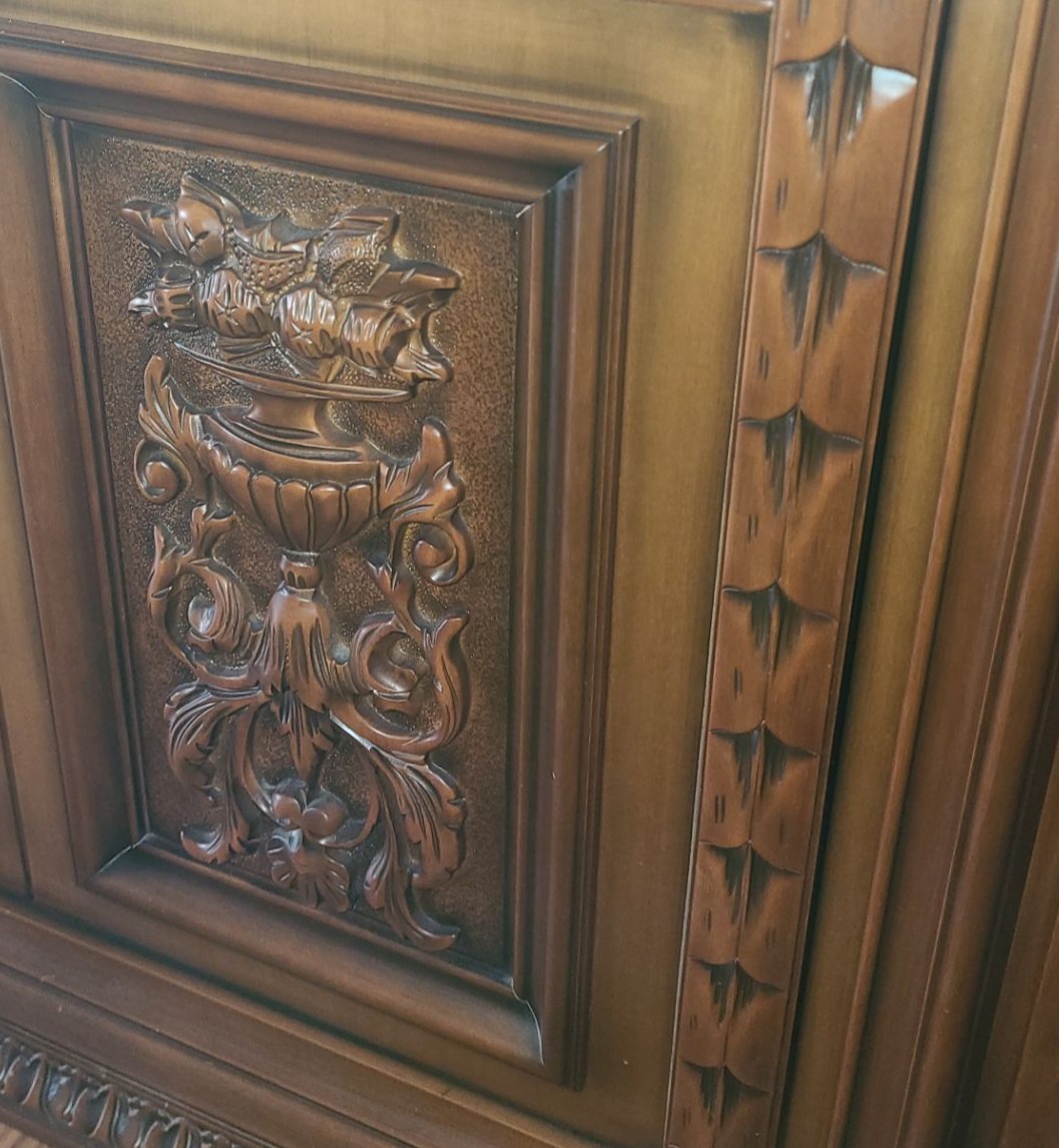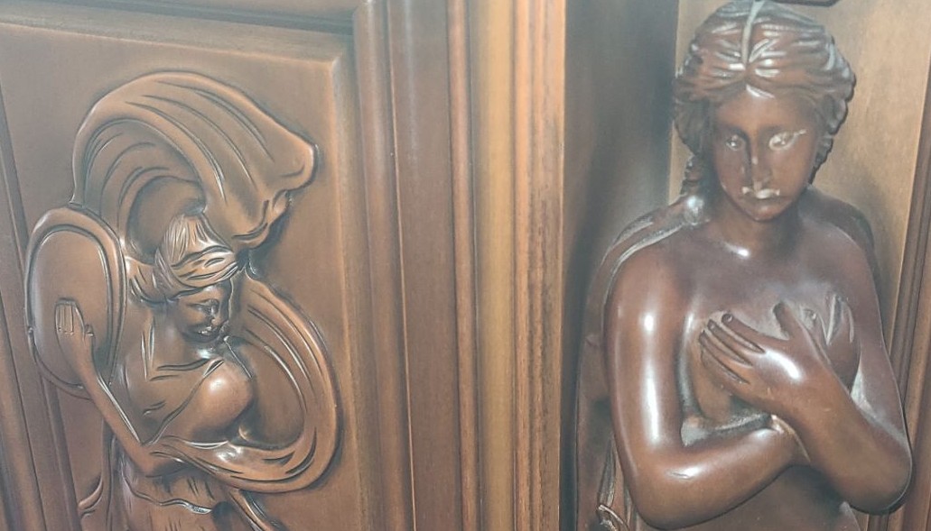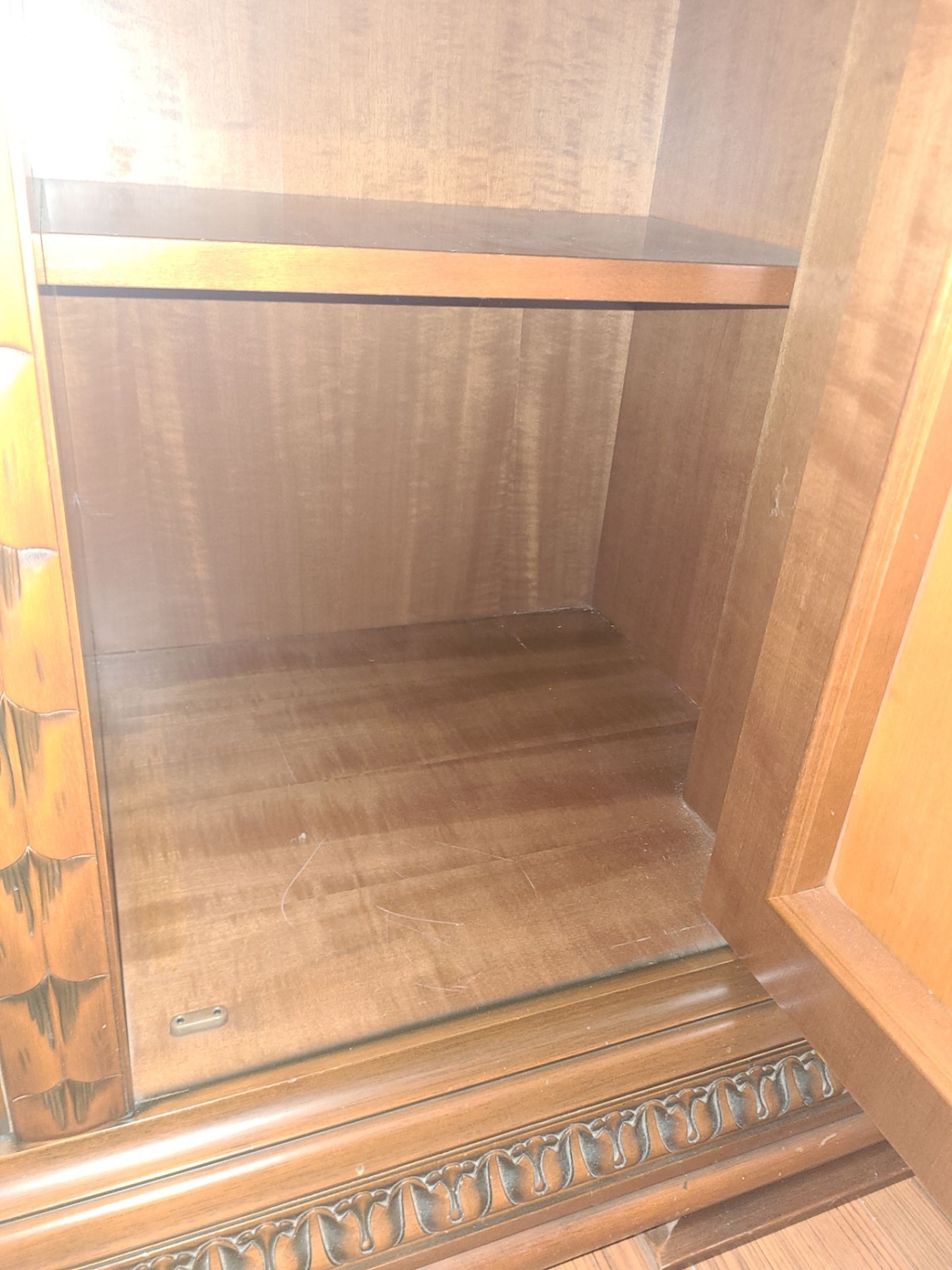 Lot 3 Vintage Italian Wood Sideboard w/ Carved Detail and Figures 79 W, 21 D, 37 T, Keys Included