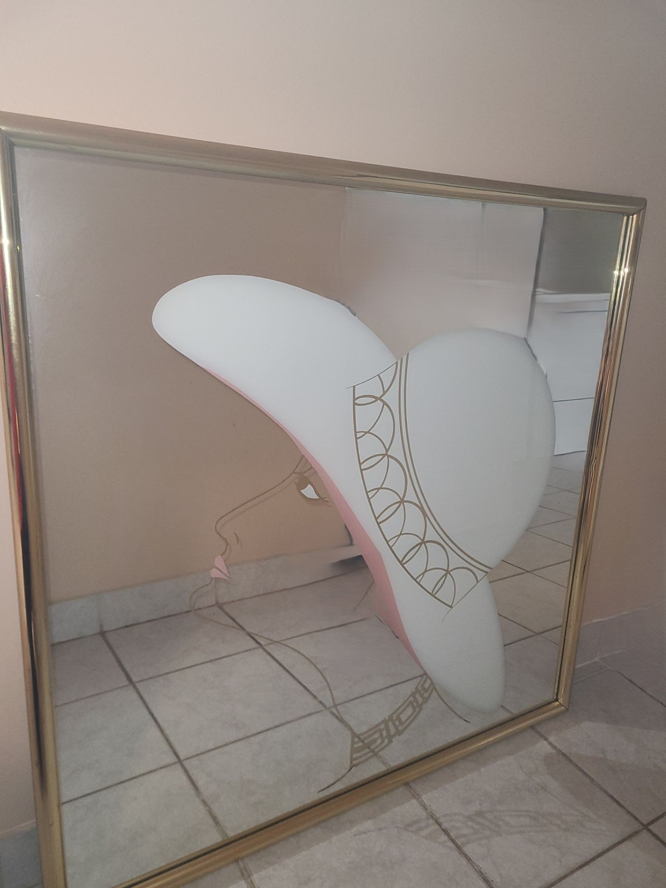 Lot 5 Vintage Mirror w/ Woman Wearing Hat 38 X 38 and Golden Frame