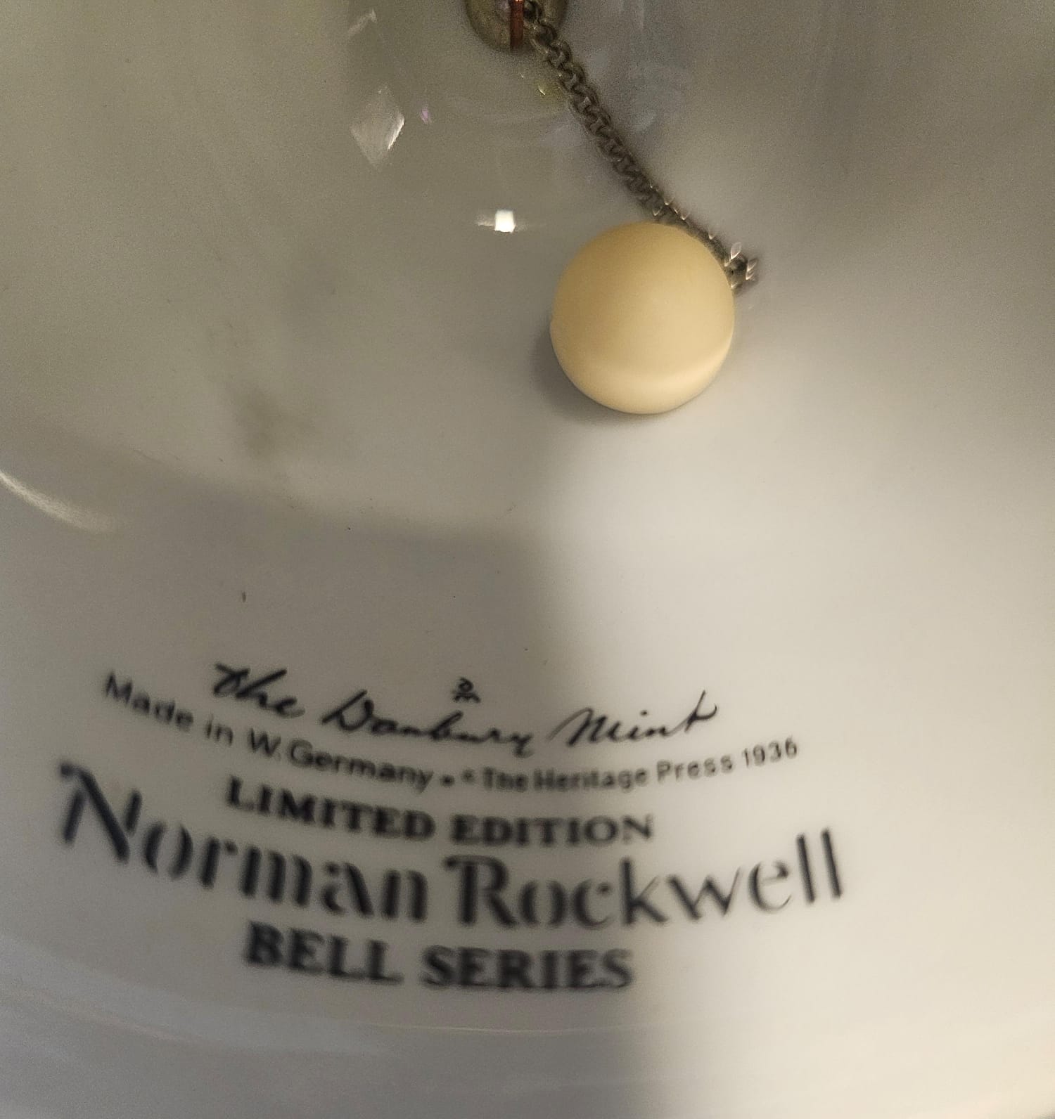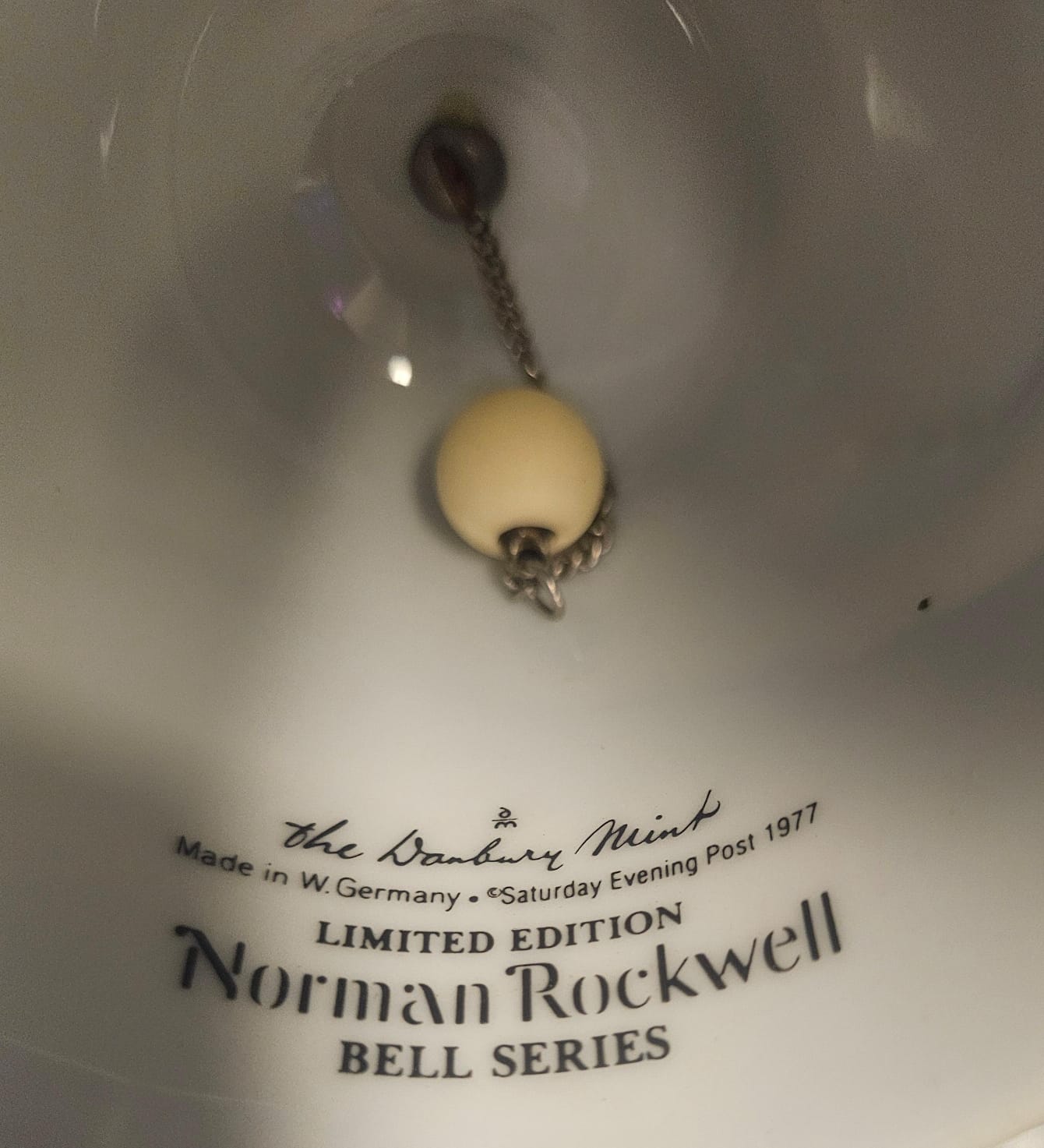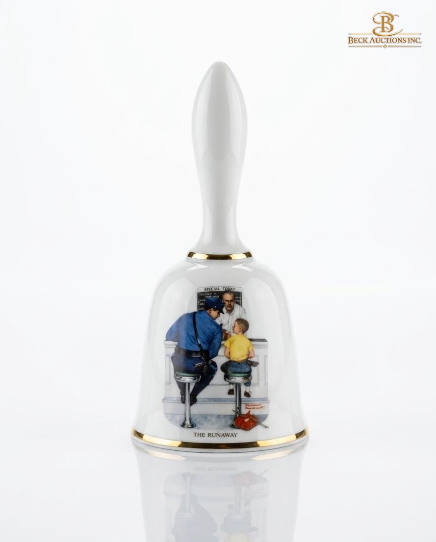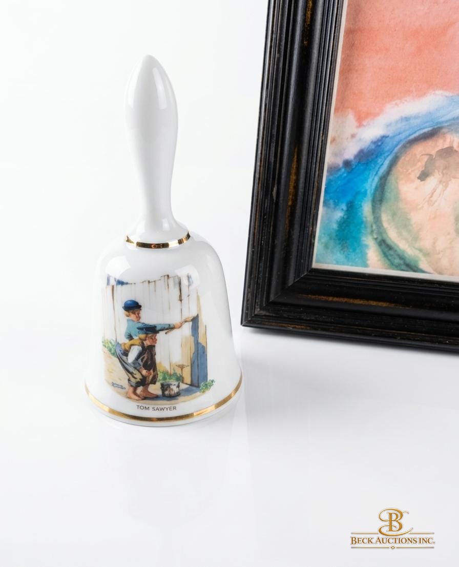 Painting Of Native American Figures, Danbury Mint Porcelain Collector Bell Featuring The Illustration "The Runaway" ''"Tom Sawyer'' By Norman Rockwell.