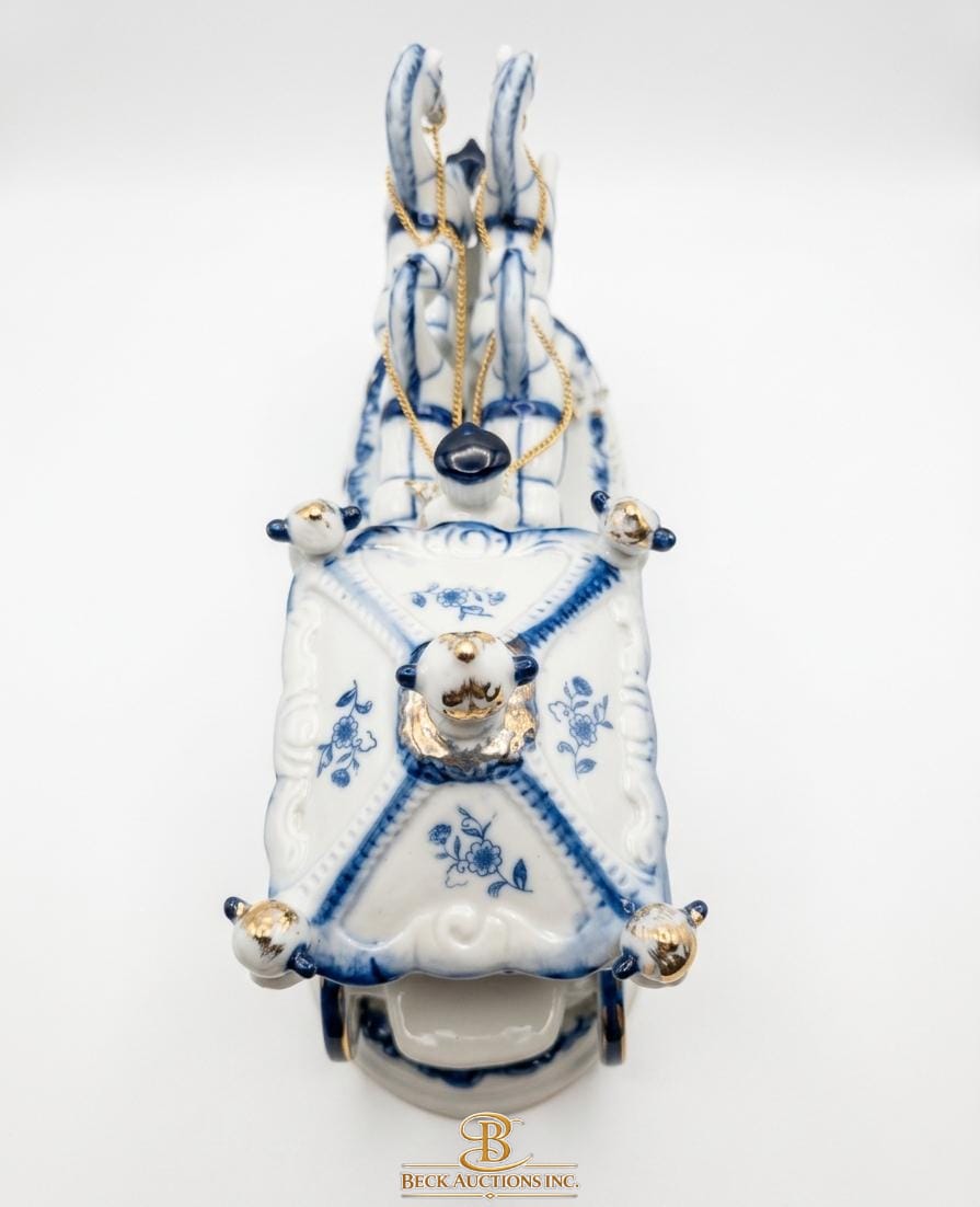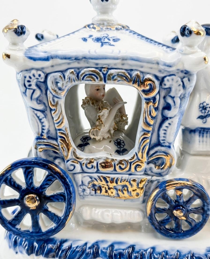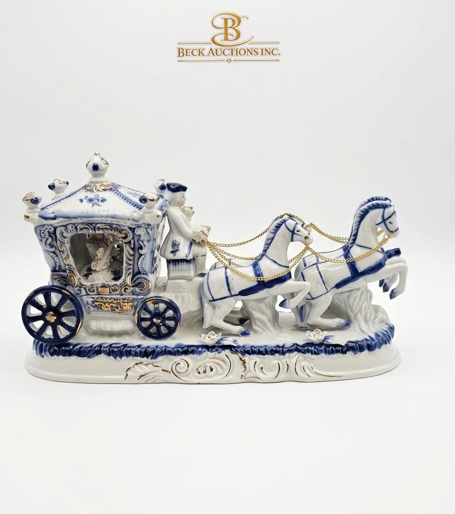 Porcelain Figurine Of Victorian Royal Carriage With Two Horses, A Coachman And A Princess Figure Inside 12''INCHES WIDTH
