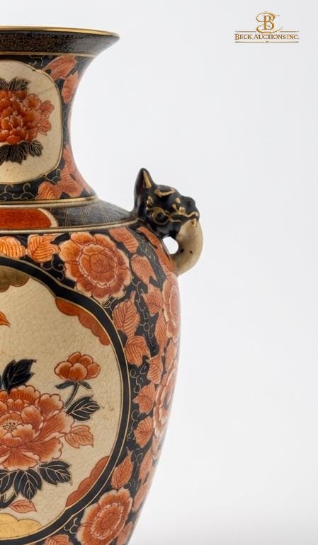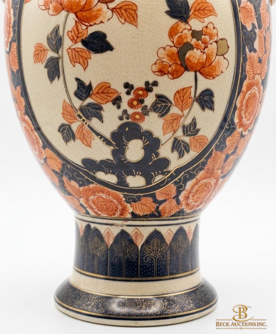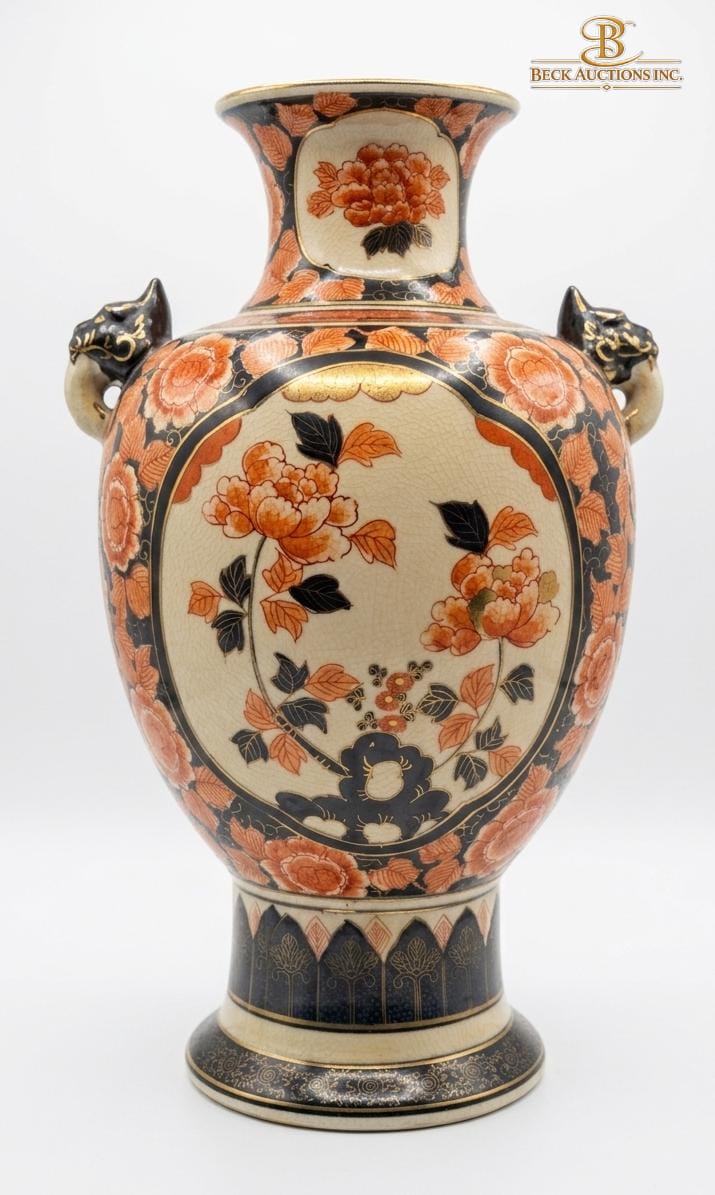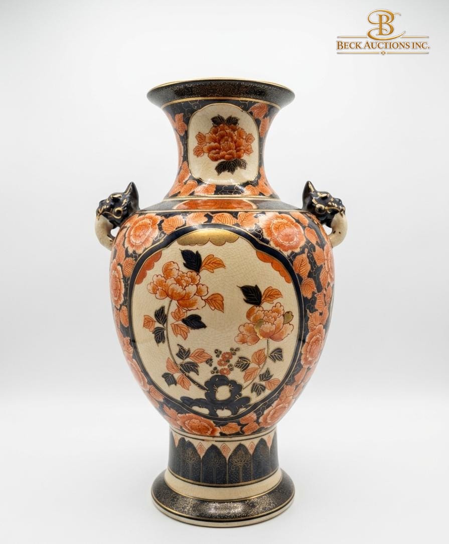Lot 29 Japanese Imari Porcelain Vase, Vibrant Color Palette Of Orange-Red Cobalt Blue And Gold Accents