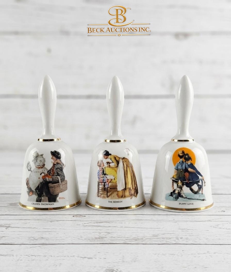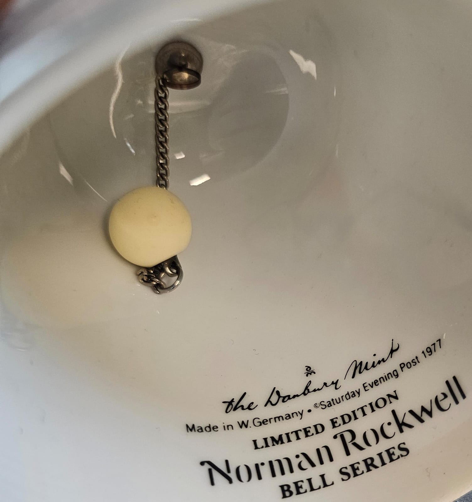 Lot 37 Porcelain Collector Bells , Artwork By Norman Rockwell, Manufactured By The Danbury Mint 1970s