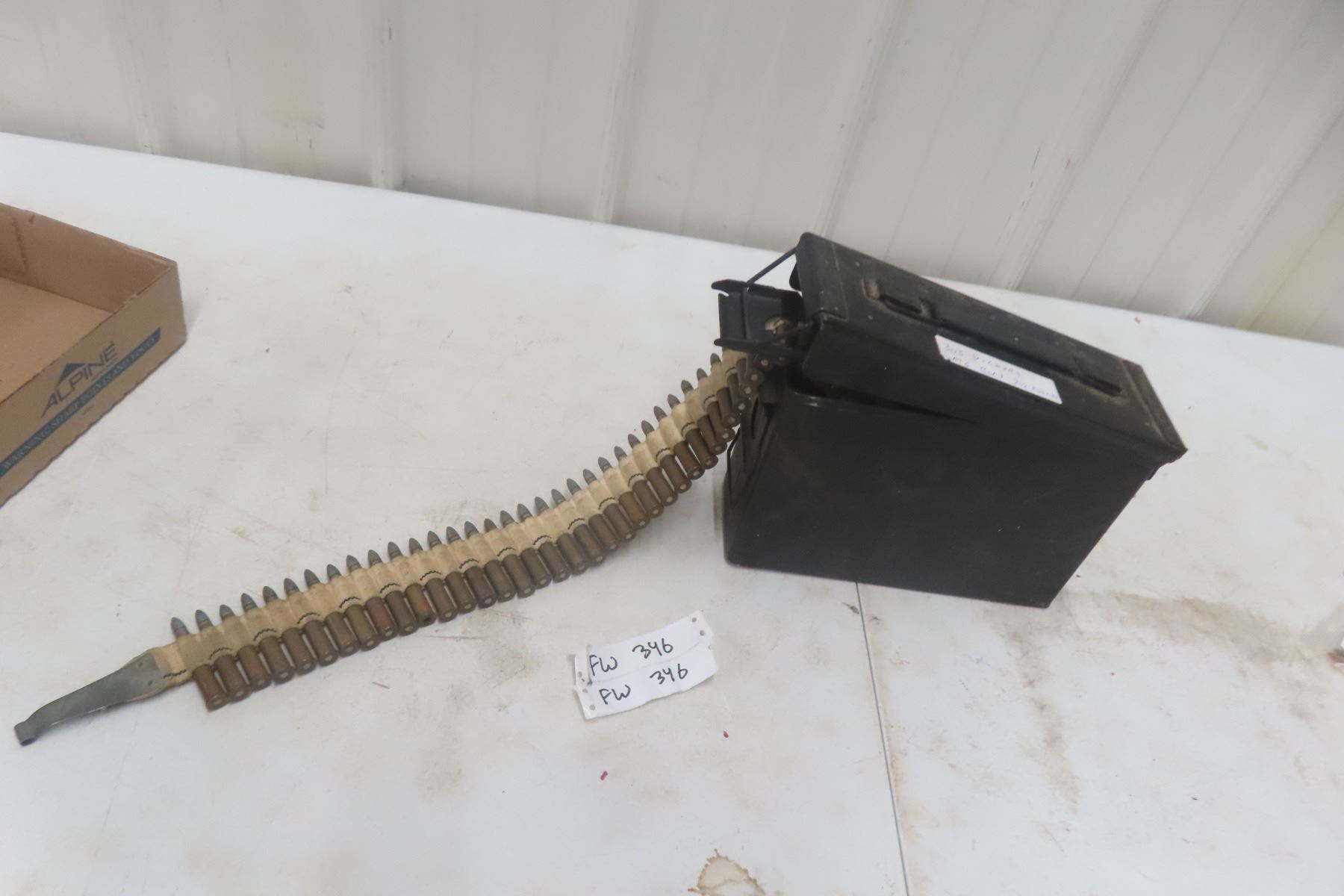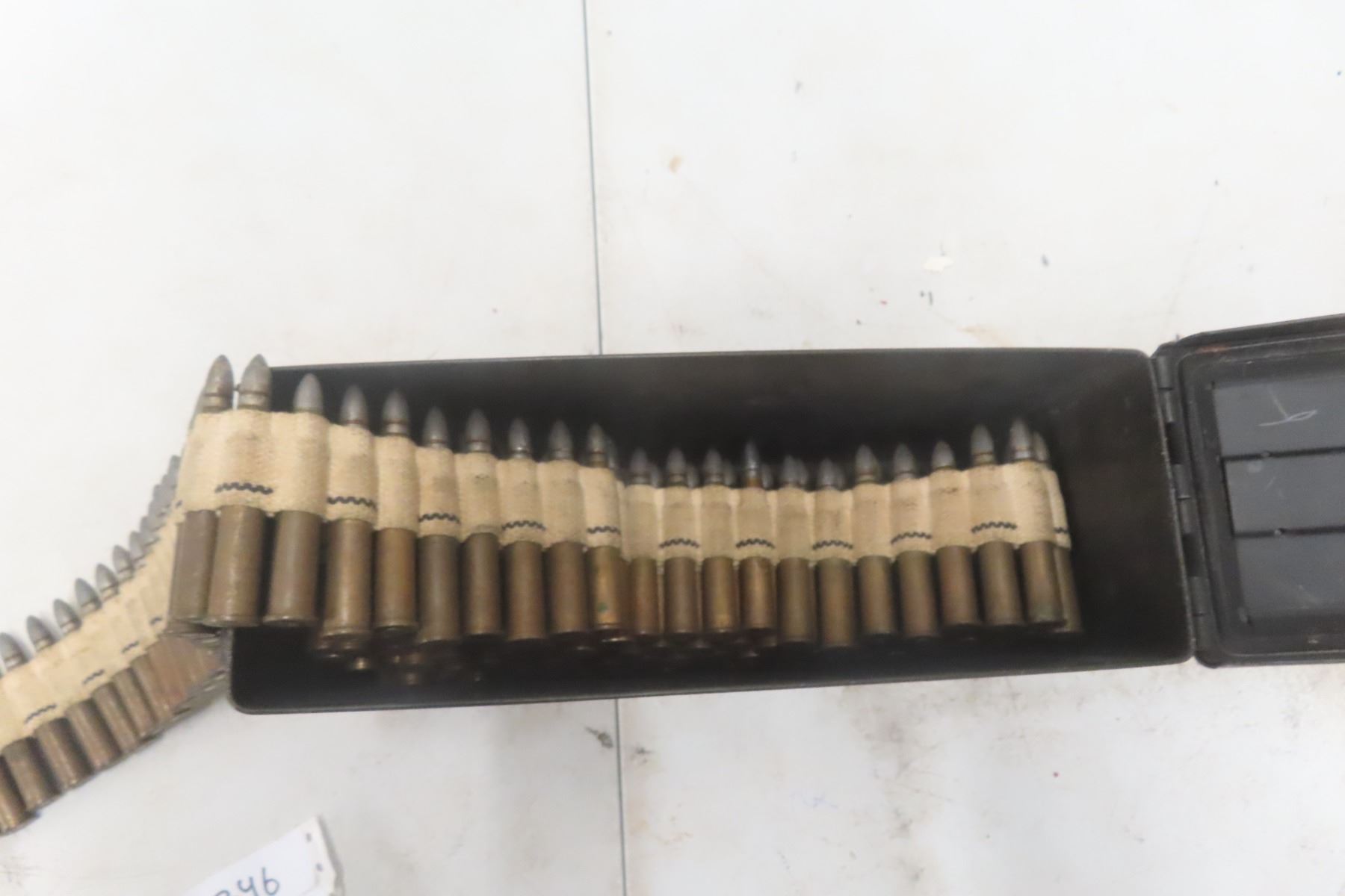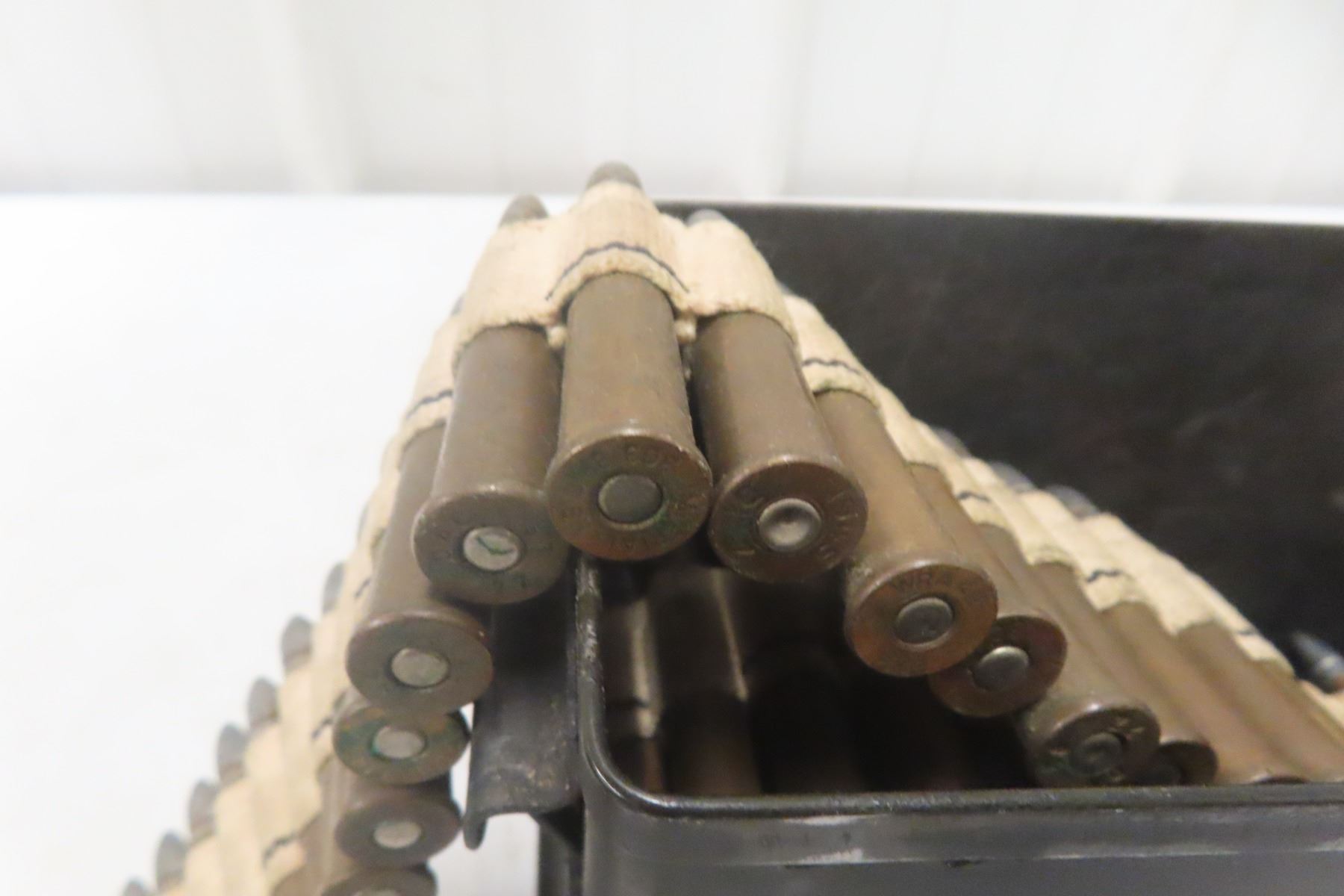 Lot 346 .303 Vickers Ammo on MG Belt – 202 Rounds in Metal Ammo Case