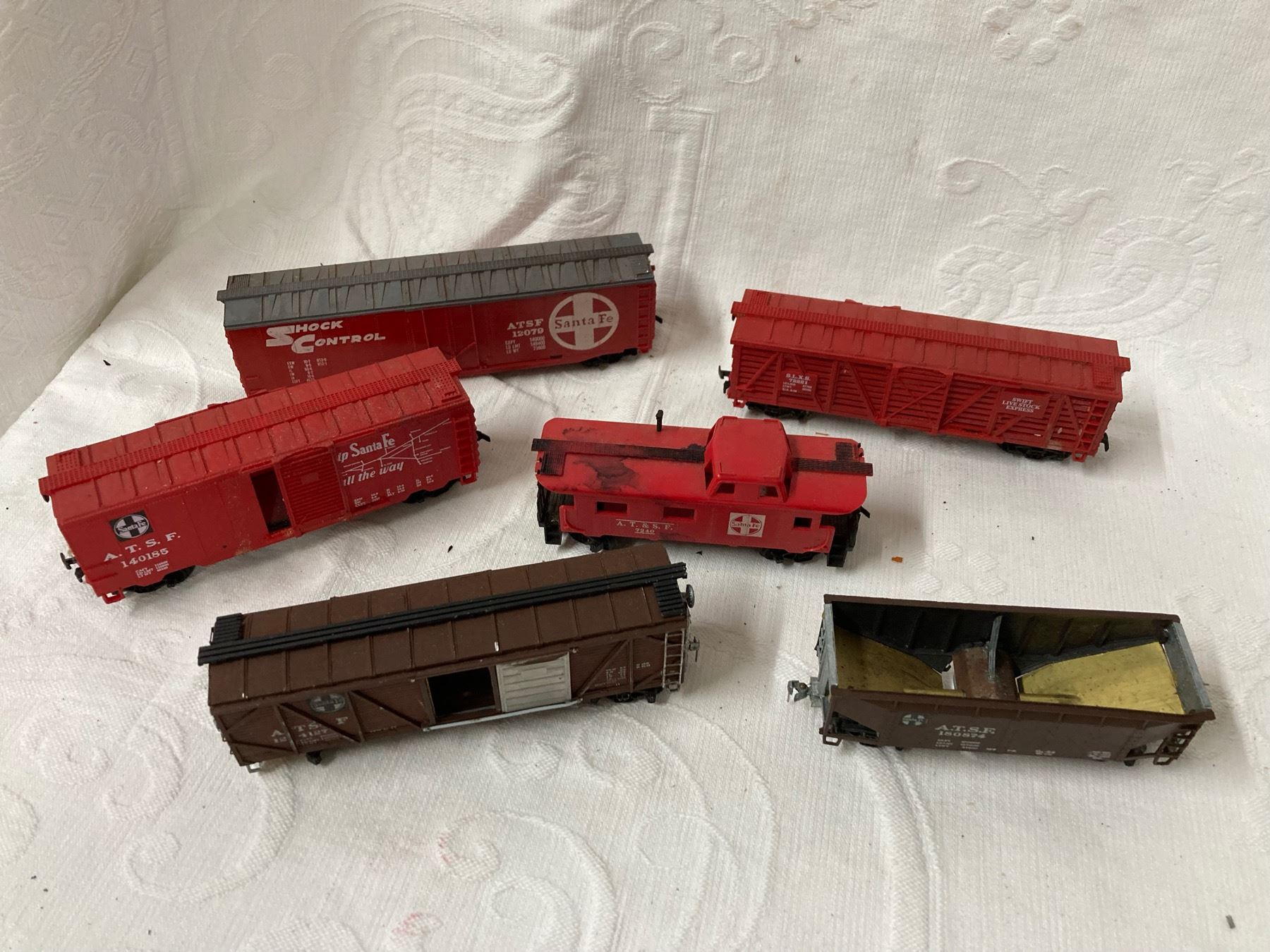VINTAGE SANTA FE RAILROAD MODEL FREIGHT CARS AND A CABOOSE