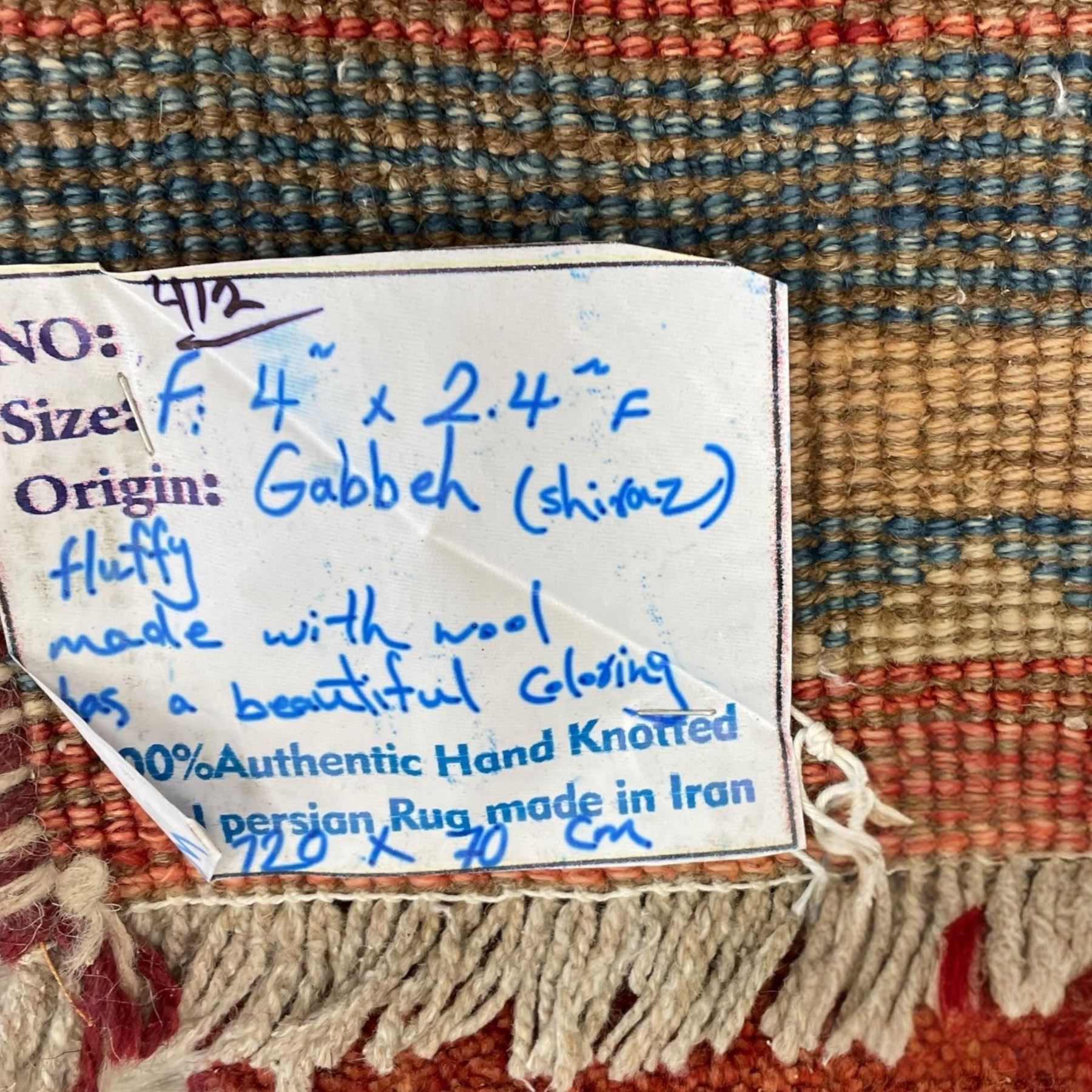 Lot 365a Genuine Hand Knotted Persian Wool Carpet from Iran * Gabbeh, Shiraz (4' x 2'4" / 120cm x 70cm)
