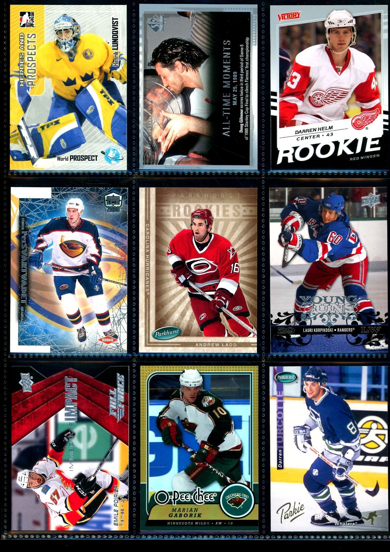 Lot 605 Lot of 9 Various Hockey Inserts or Rookie Cards Various Teams & Players